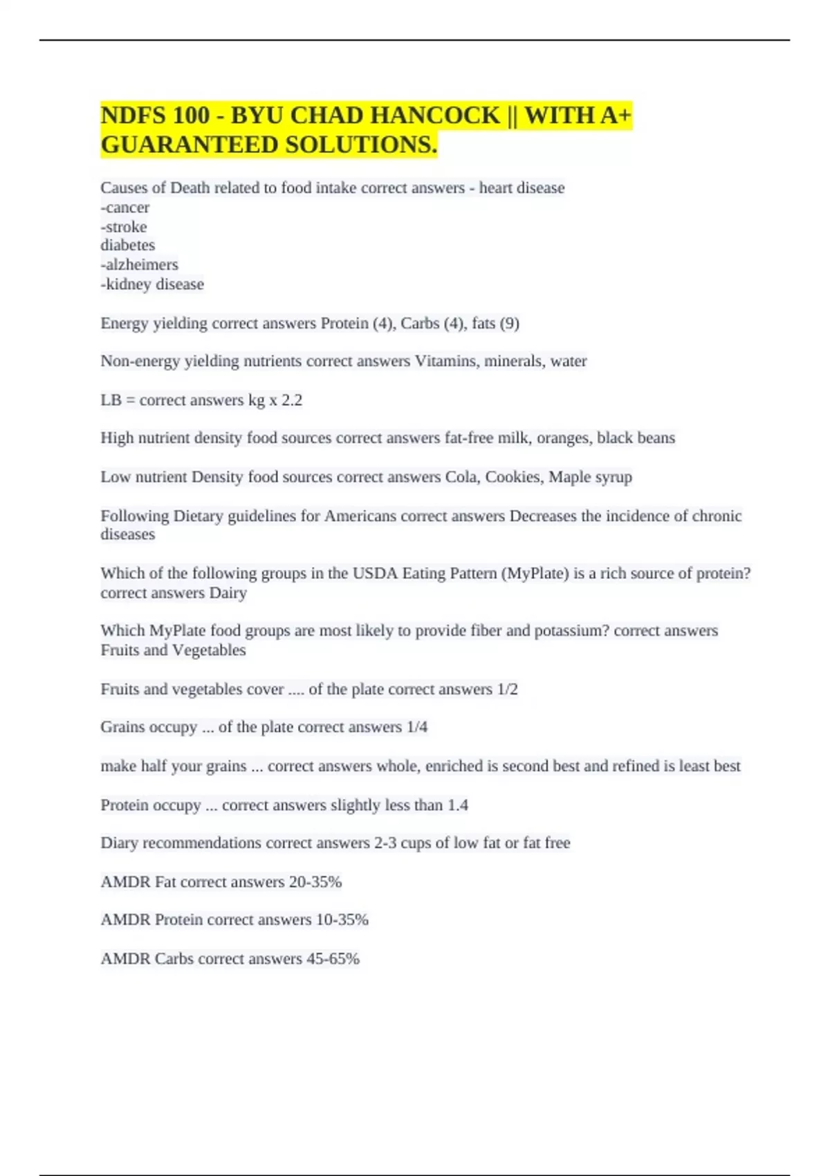 Following Dietary guidelines for Americans correct answers Decreases the incidence of chronic