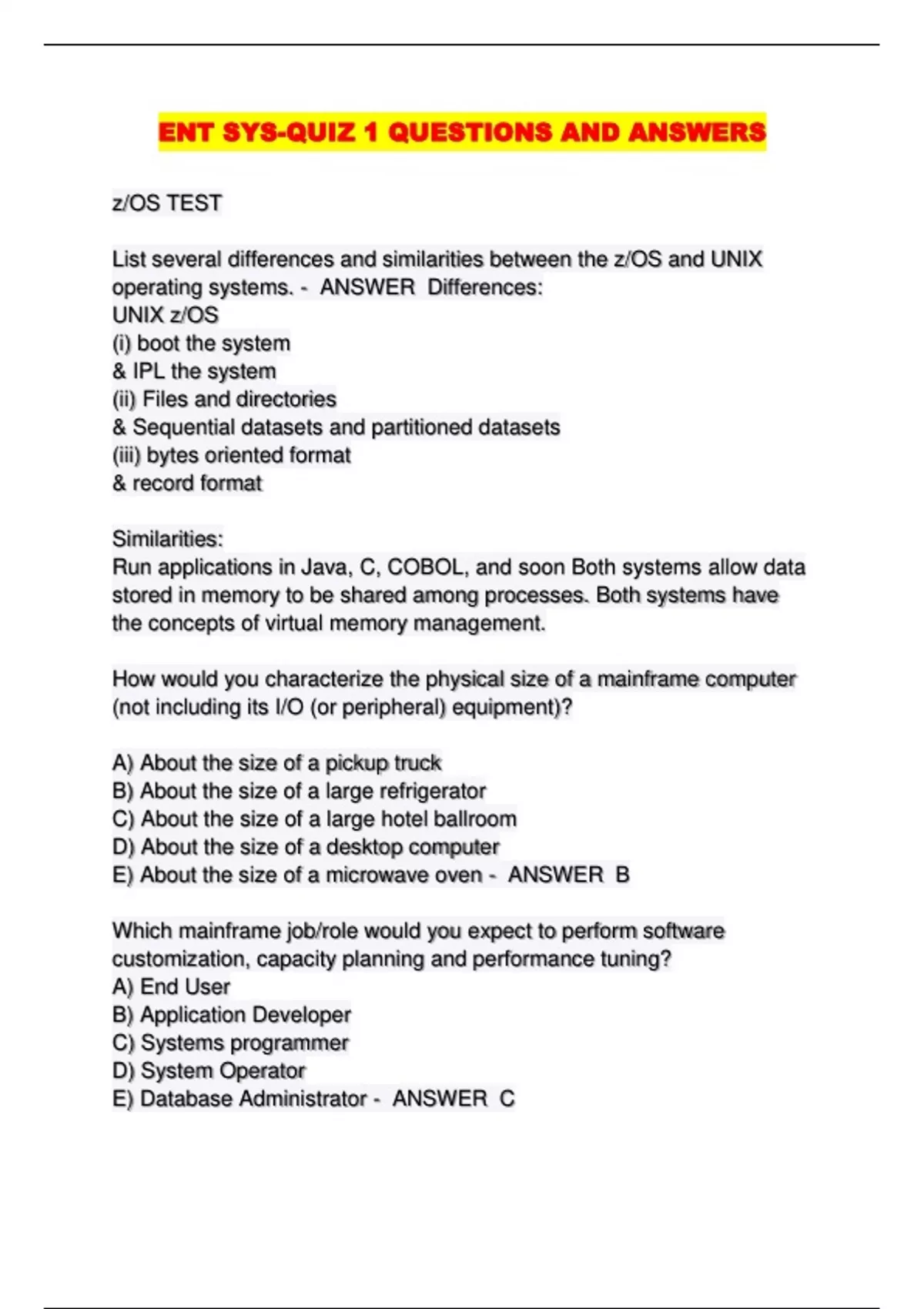 ENT SYS-QUIZ 1 QUESTIONS AND ANSWERS