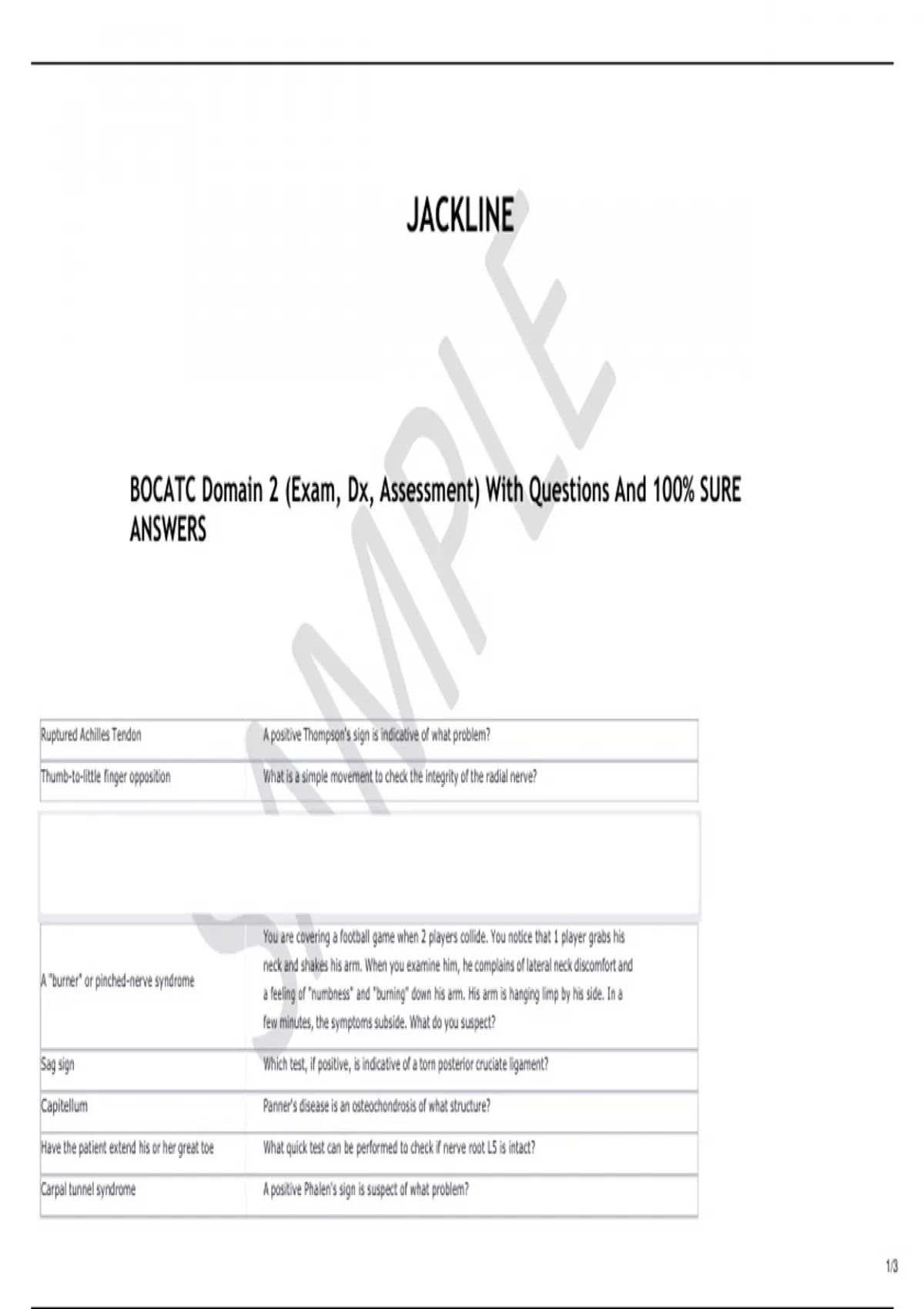BOCATC Domain 2 (Exam, Dx, Assessment) With Questions And 100% SURE
