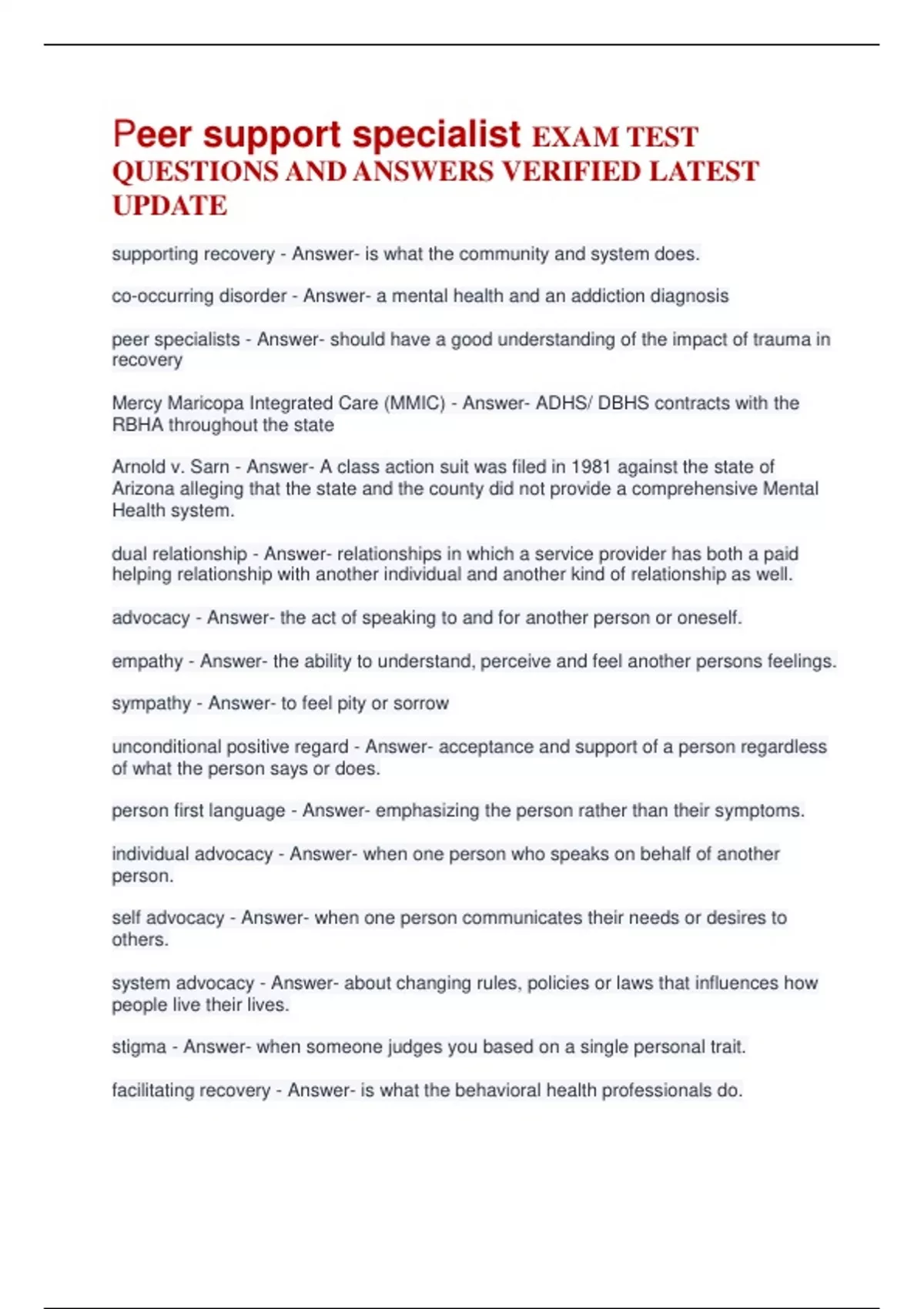 peer specialists - Answer- should have a good understanding of the impact of trauma in