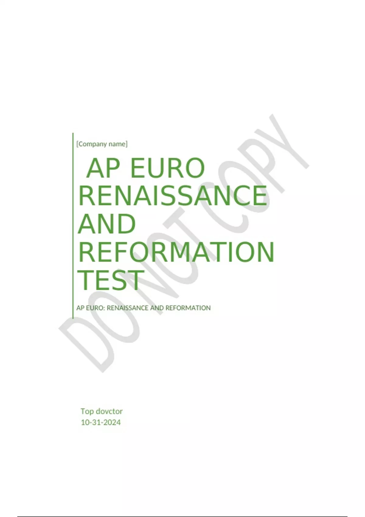 ,AP EURO RENAISSANCE AND REFORMATION TEST