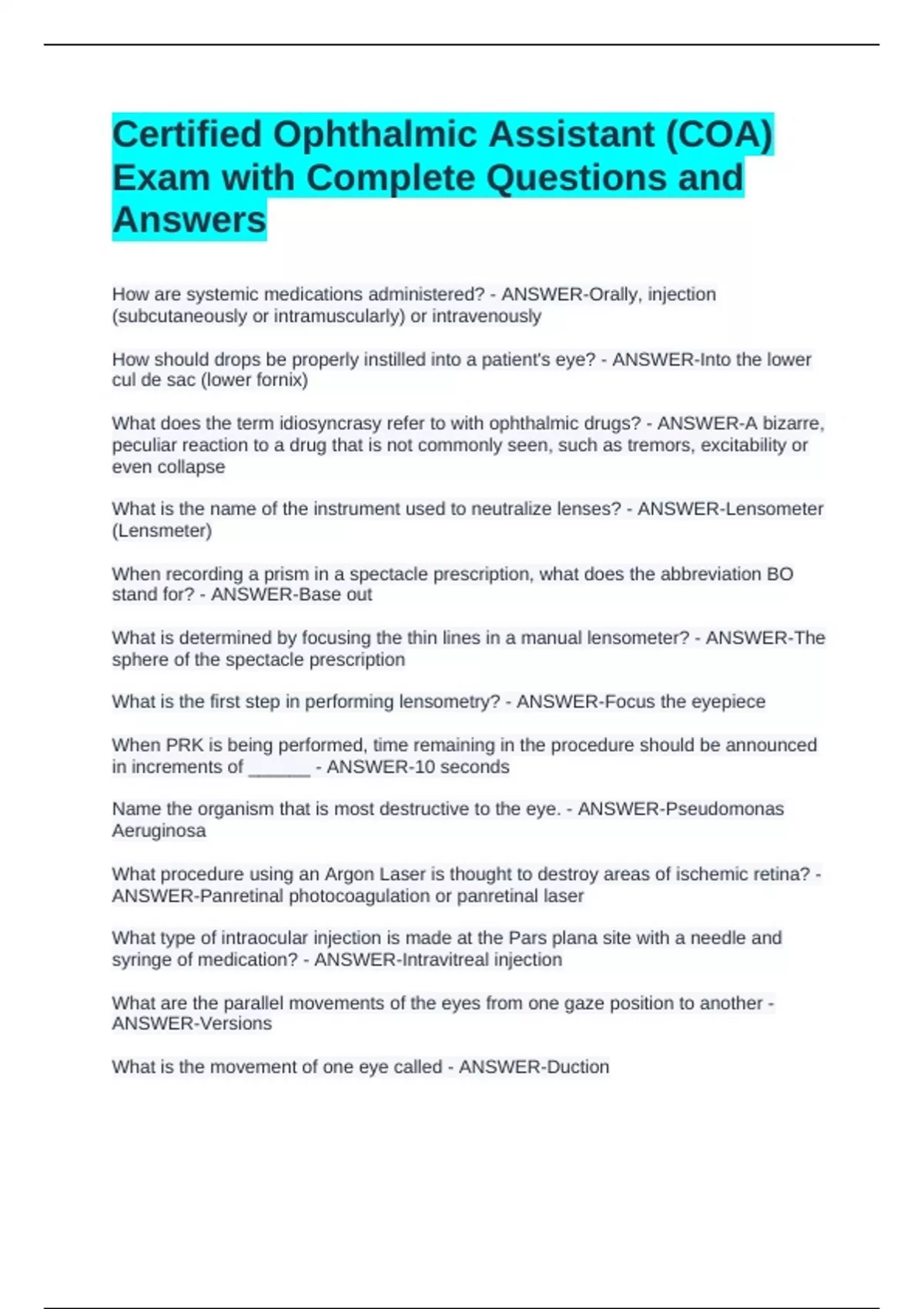 ANSWER-Contact lens fitting, refractive surgery, intraocular lens calculations,