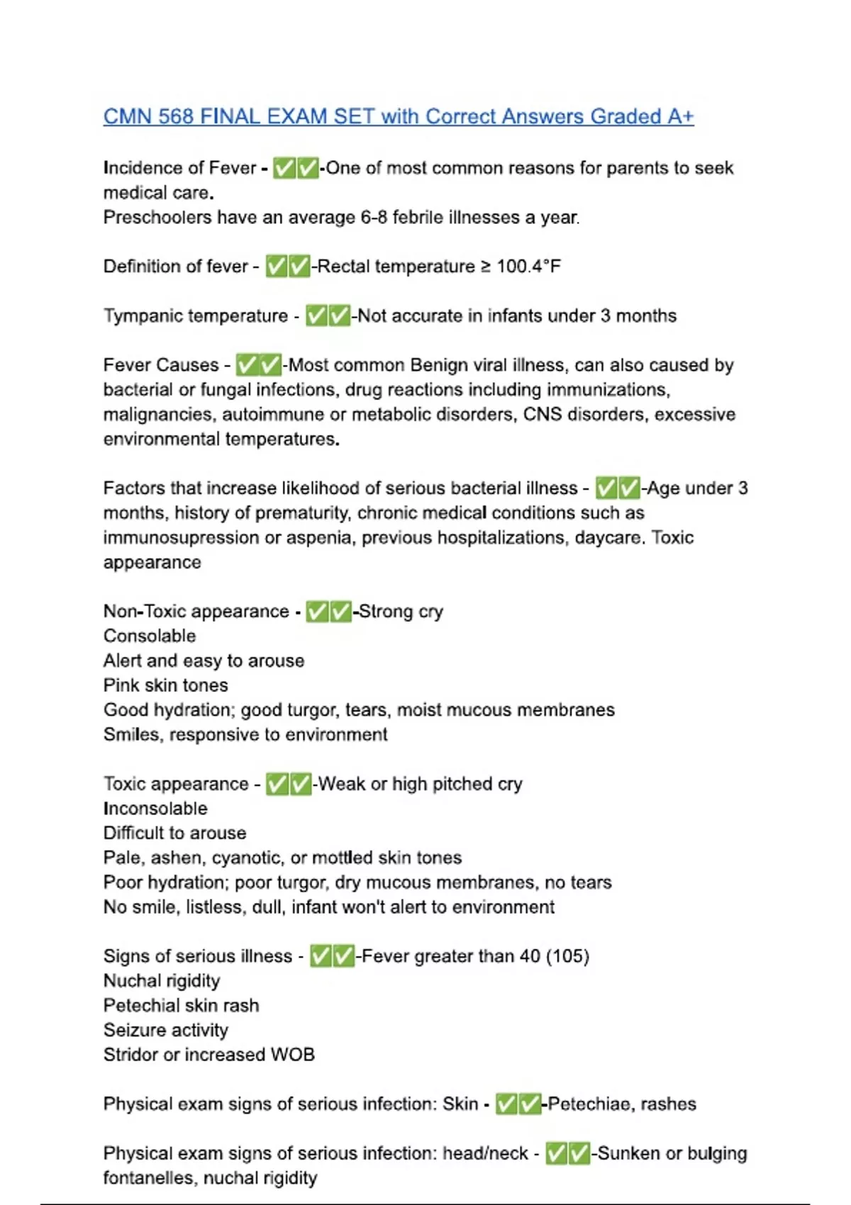 CMN 568 FINAL EXAM SET with Correct Answers Graded A+