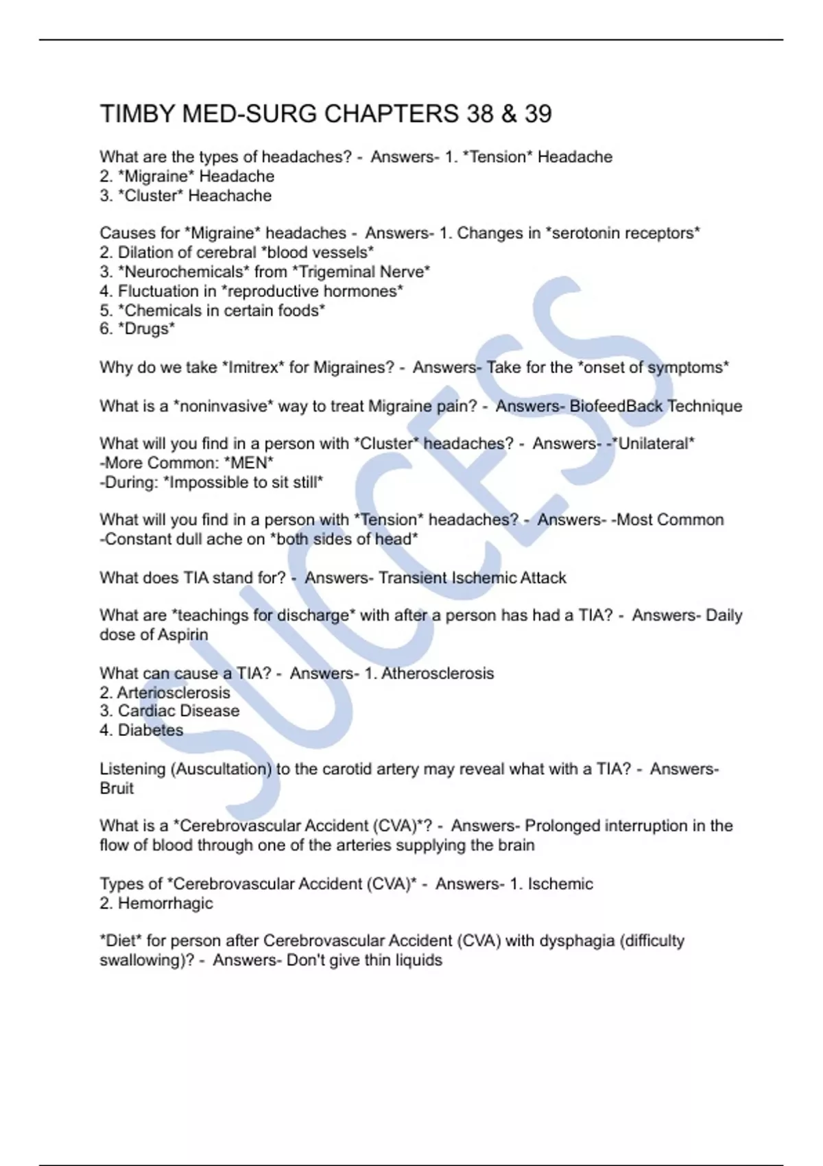 What is Transient Ischemic Attack (TIA) a *warning* for? - Answers- *Cerebrovascular