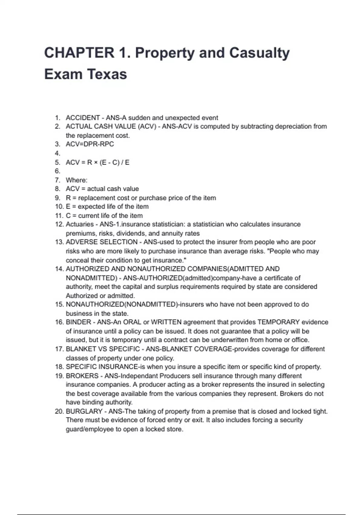 8. ACV = actual cash value