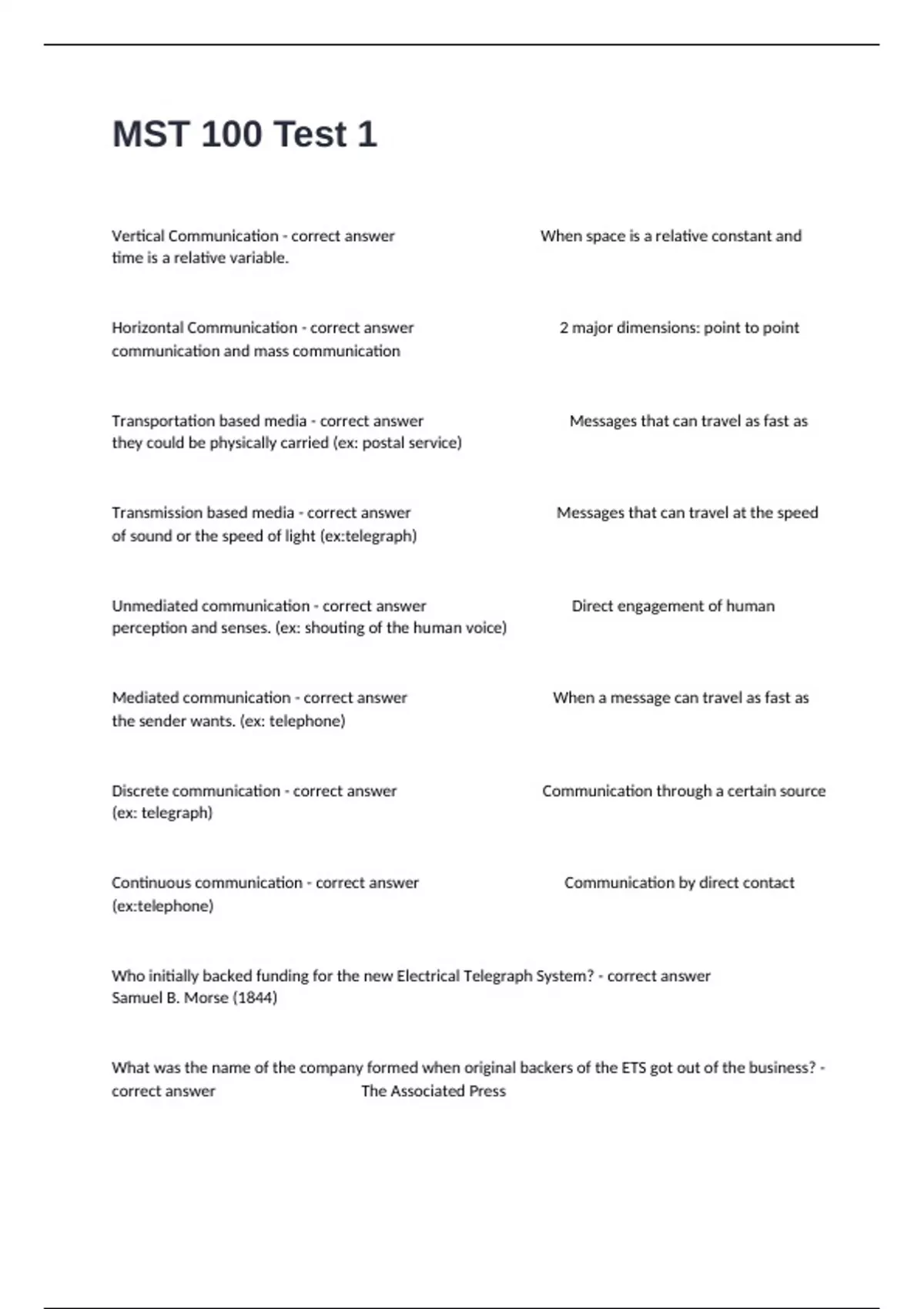 Samuel F.B. Morse - correct answer Inventor of the telegraph (discrete)