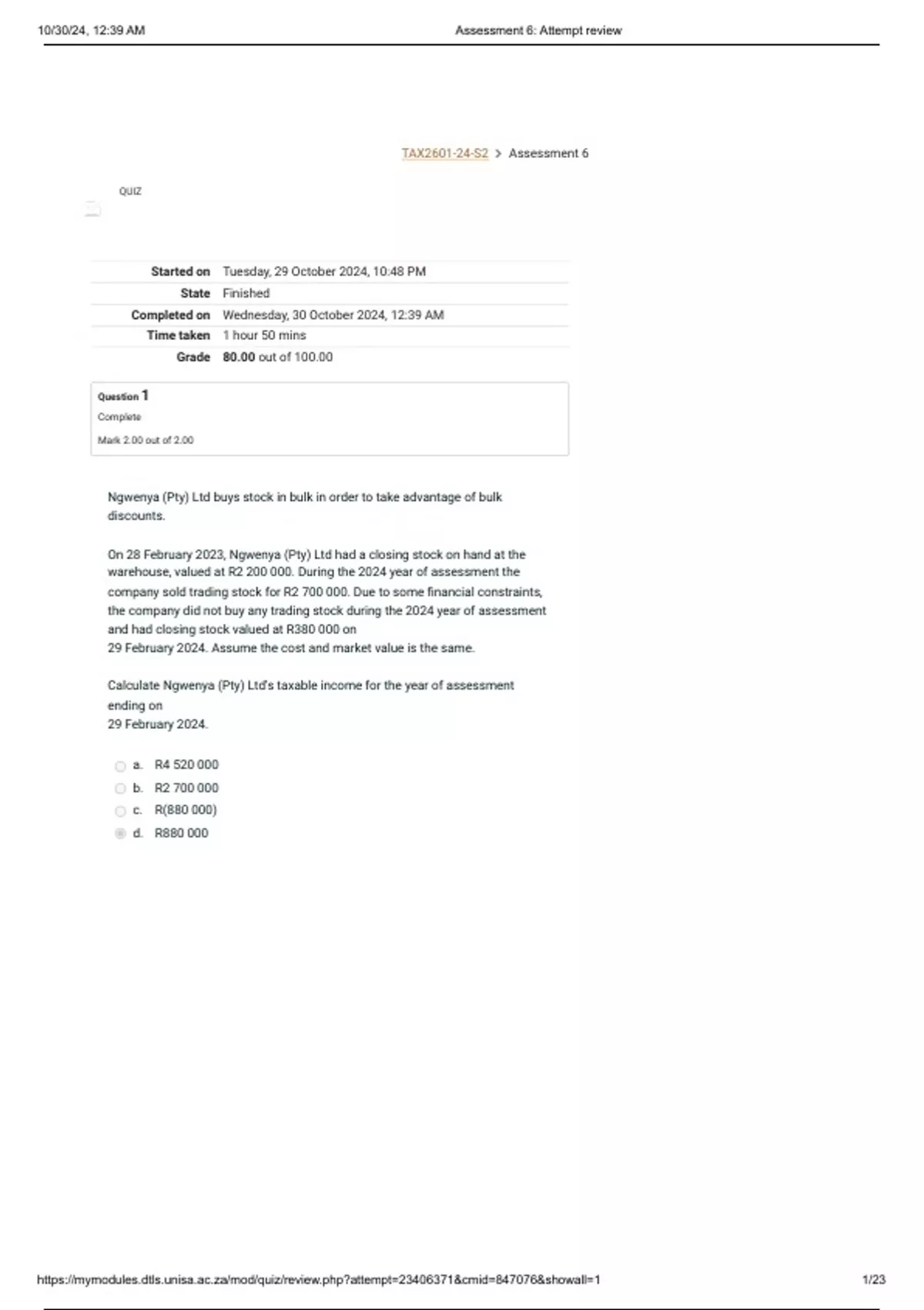 https://mymodules.dtls.unisa.ac.za/mod/quiz/review.php?attempt=23406371&cmid=847076&showall=1 1/23