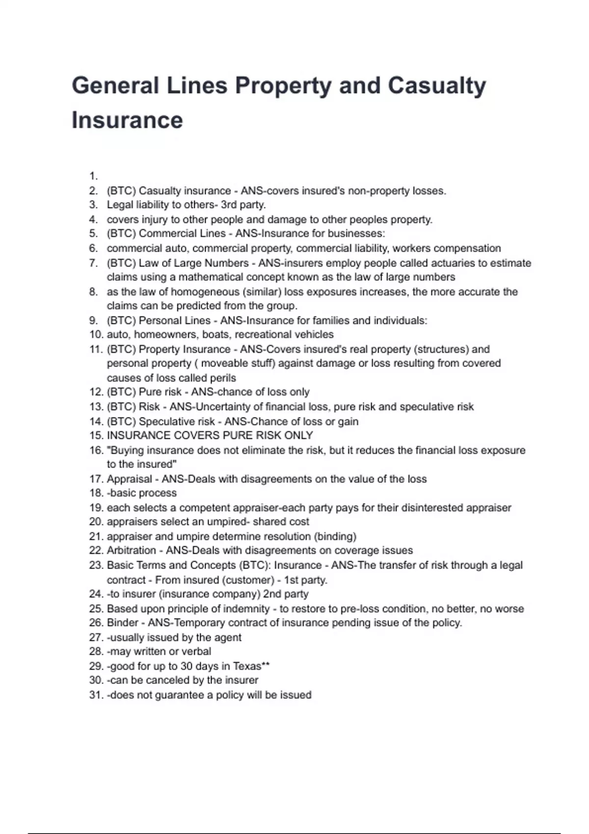 2. (BTC) Casualty insurance - ANS-covers insured's non-property losses.