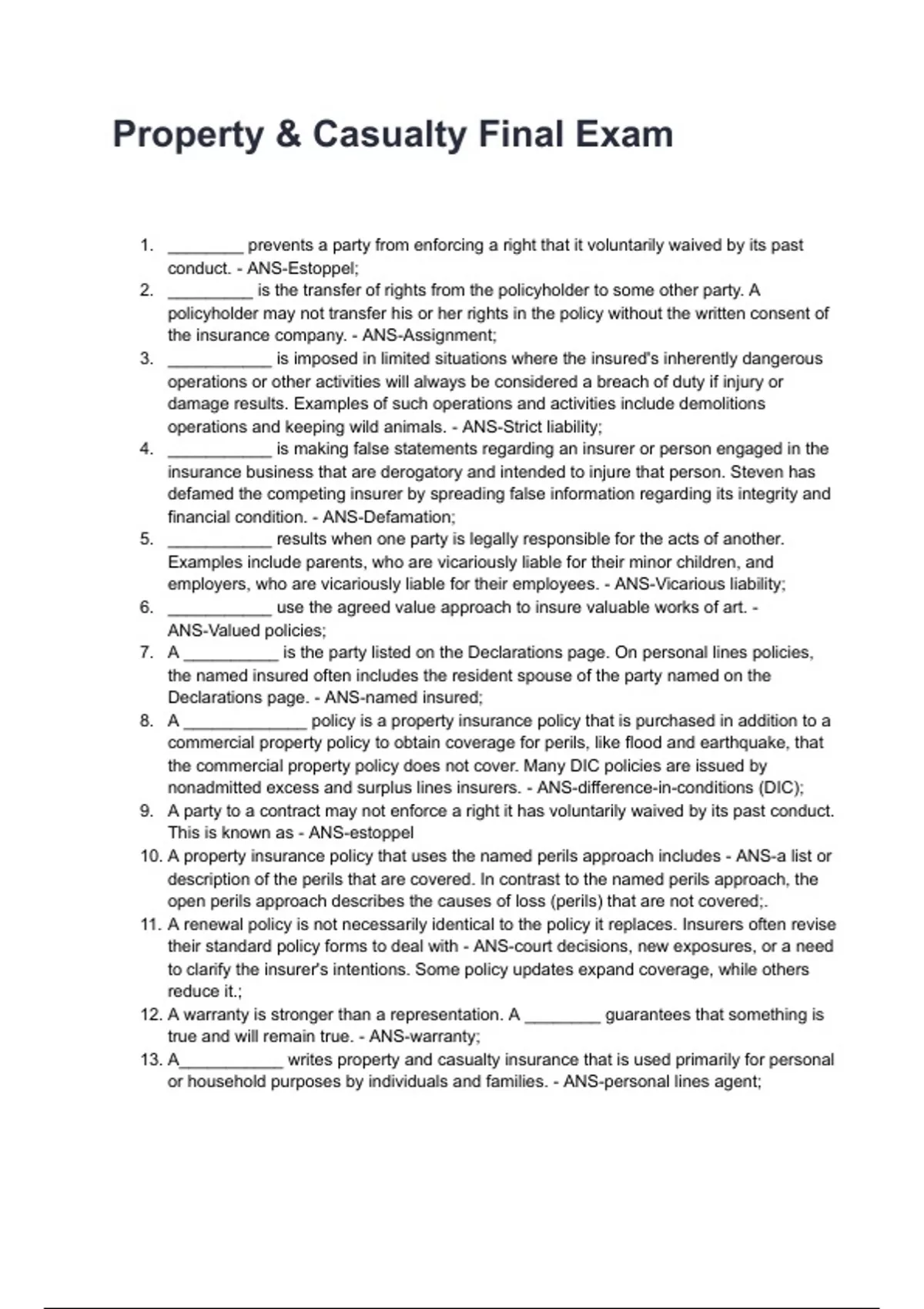 dates of coverage, and with property insurance, the covered perils. - ANS-written binder;