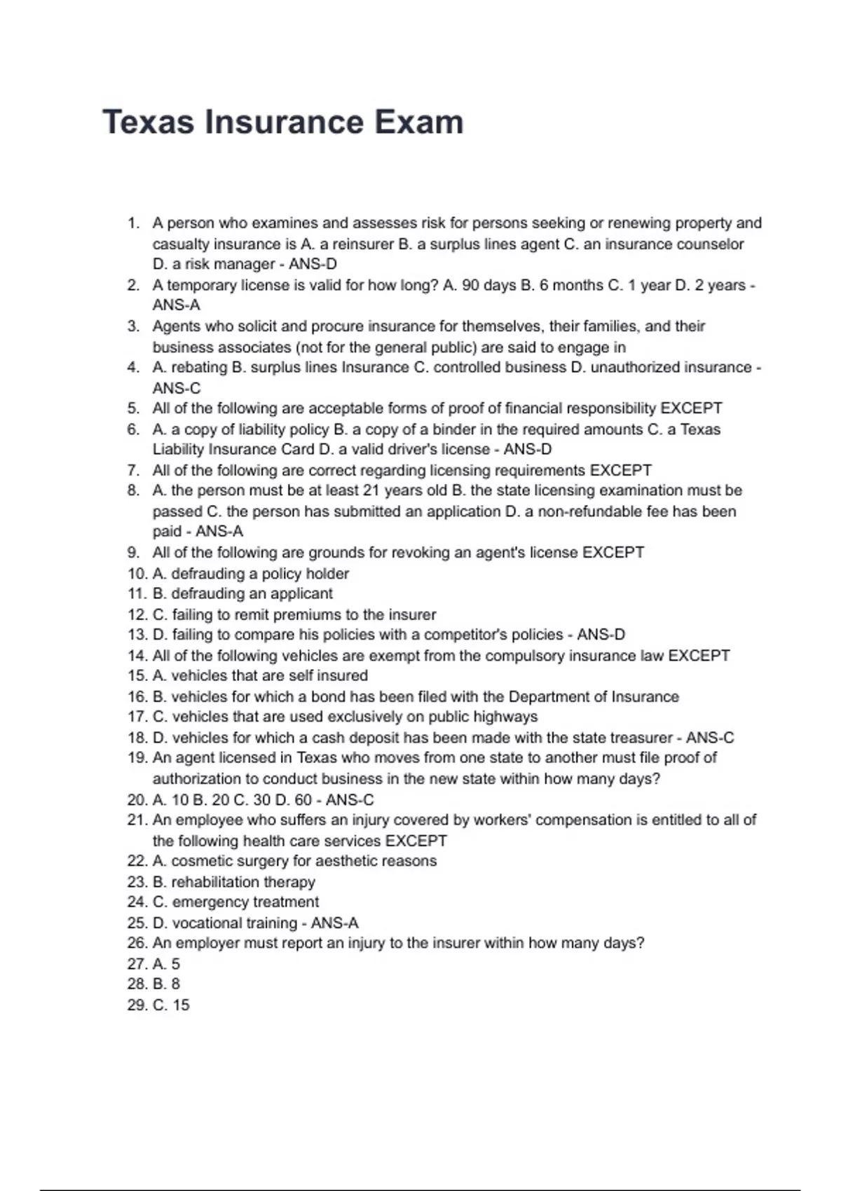 Liability Insurance Card D. a valid driver's license - ANS-D