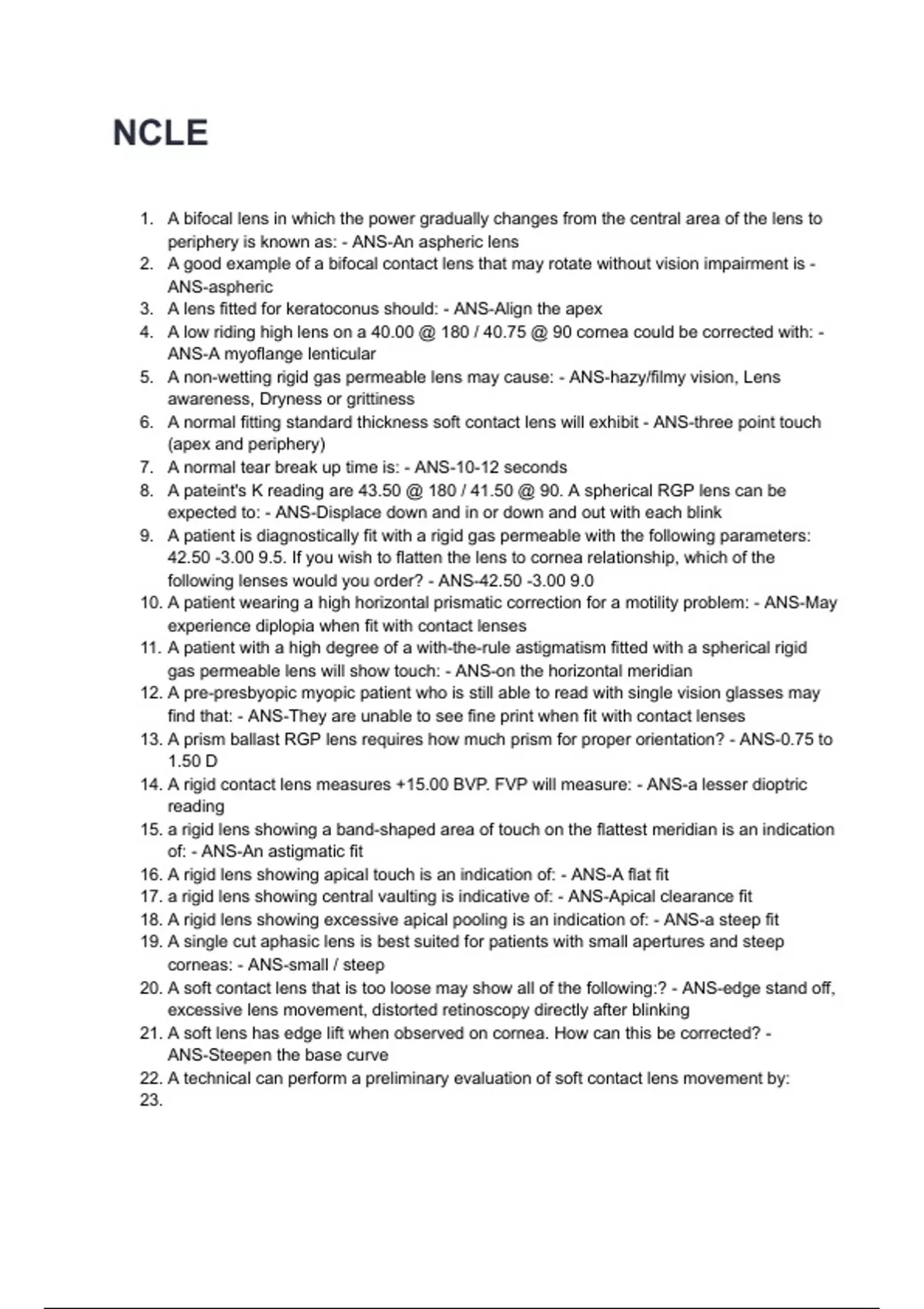 28. A technique for correcting a high ridding rigid minus lens may be to use a - ANS-Prism