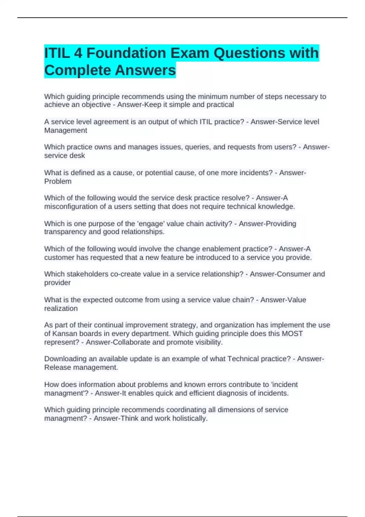 ITIL 4 Foundation Exam Questions with