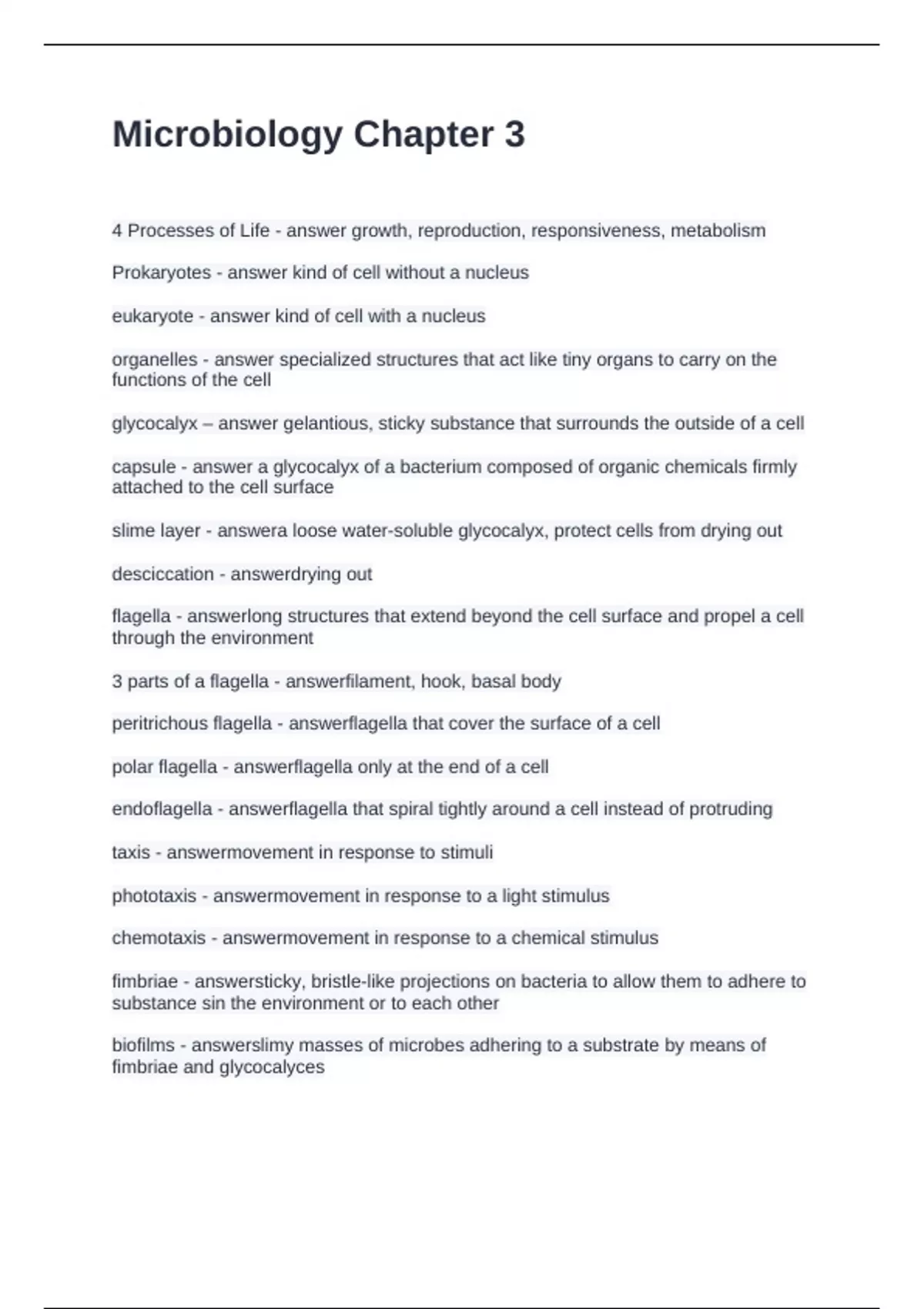 Microbiology Chapter 3 Questions and Answers 100% Solved