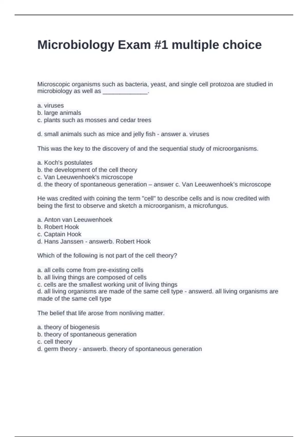 Microbiology Exam -1 multiple choice Questions and Answers Fully Solved