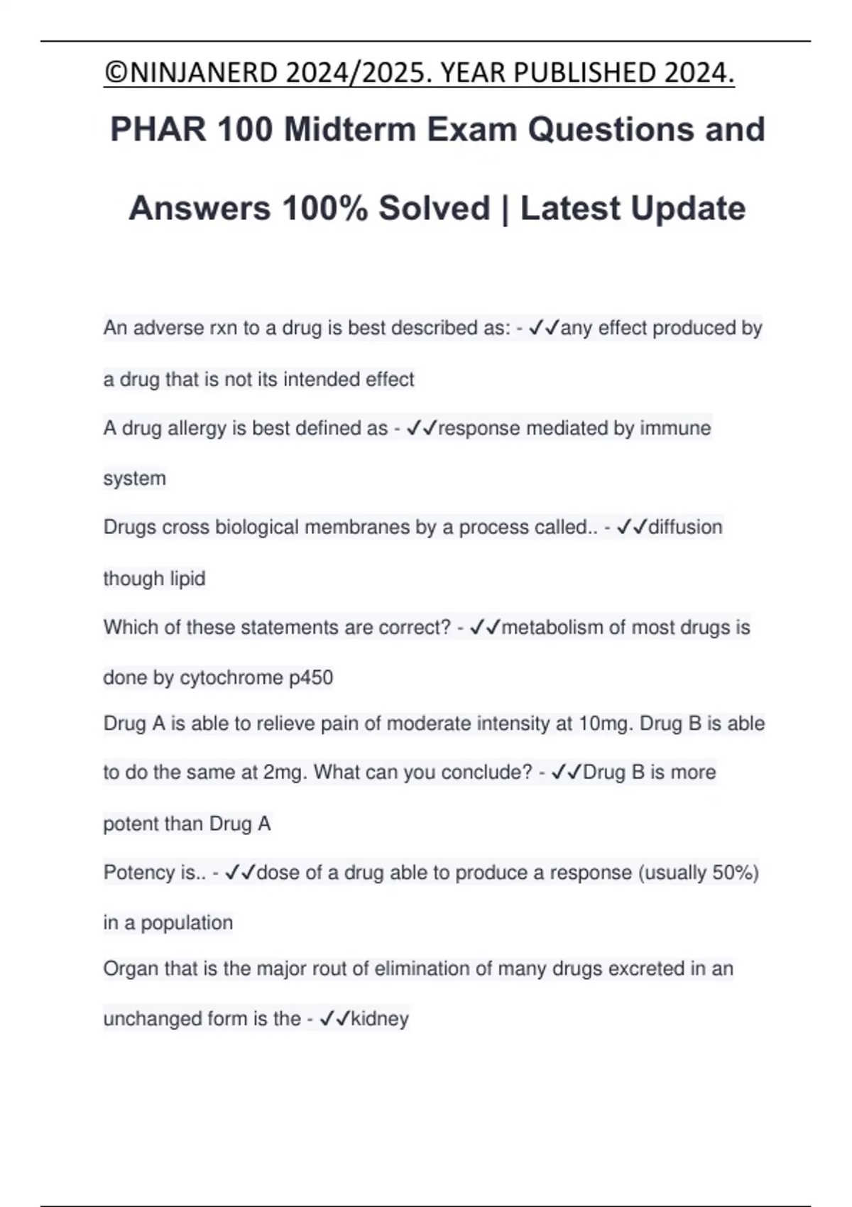 PHAR 100 Midterm Exam Questions and