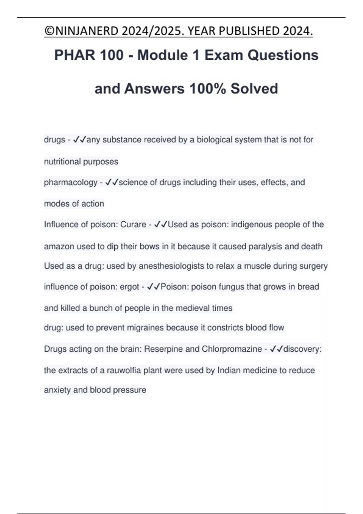 PHAR 100 - Module 1 Exam Questions
