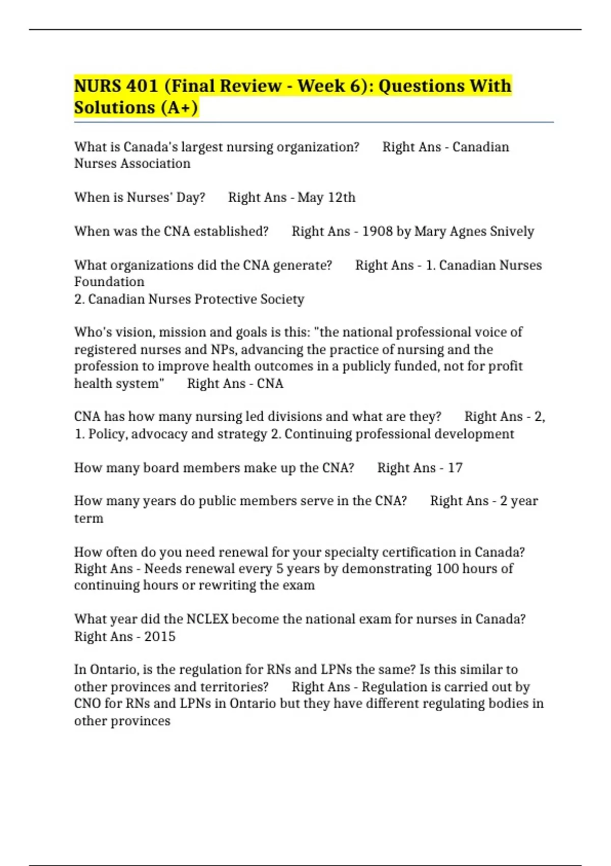 What is Canada's largest nursing organization? Right Ans - Canadian