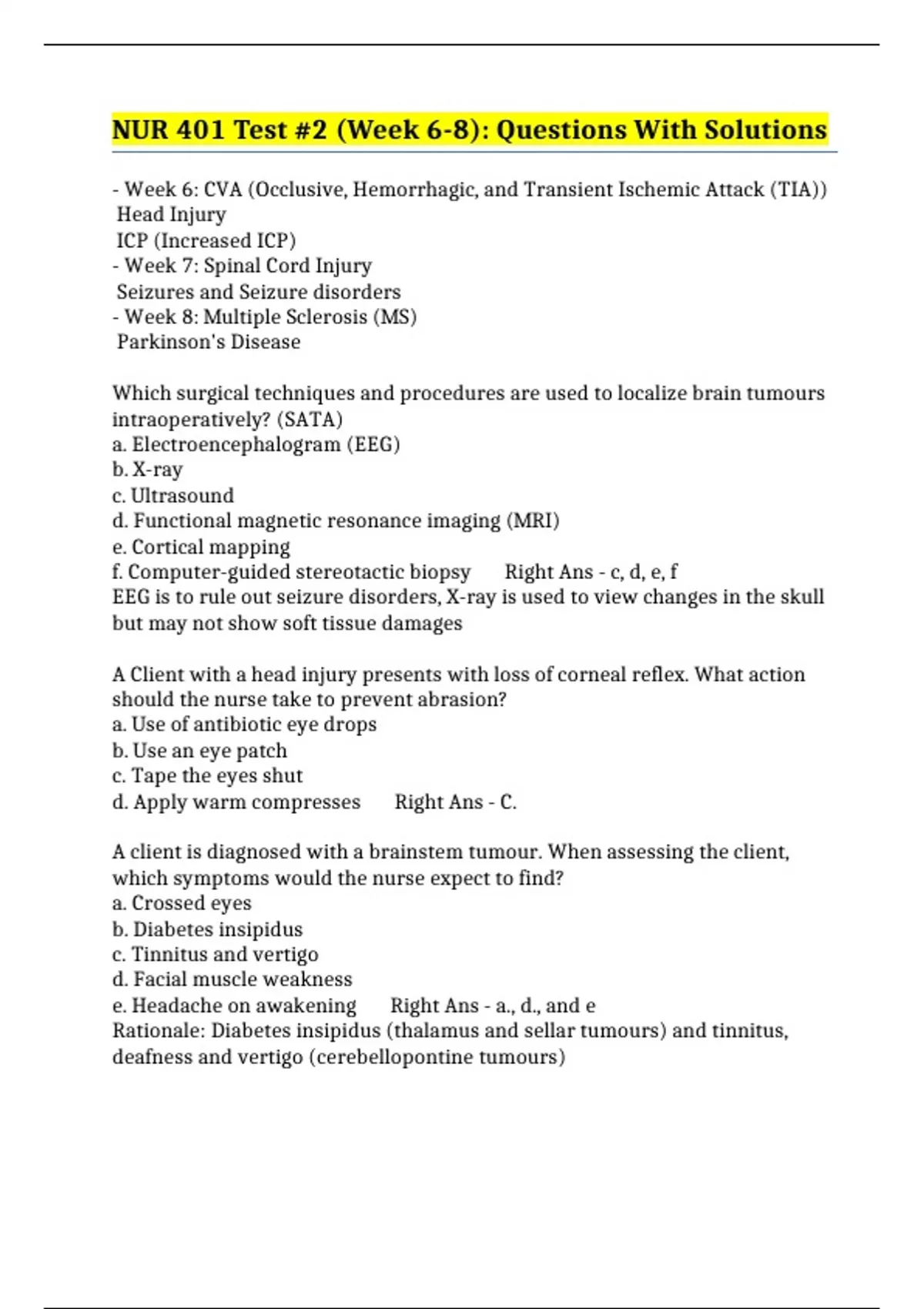- Week 6: CVA (Occlusive, Hemorrhagic, and Transient Ischemic Attack (TIA))
