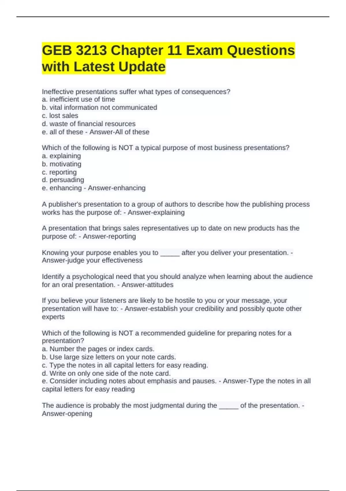 GEB 3213 Chapter 11 Exam Questions