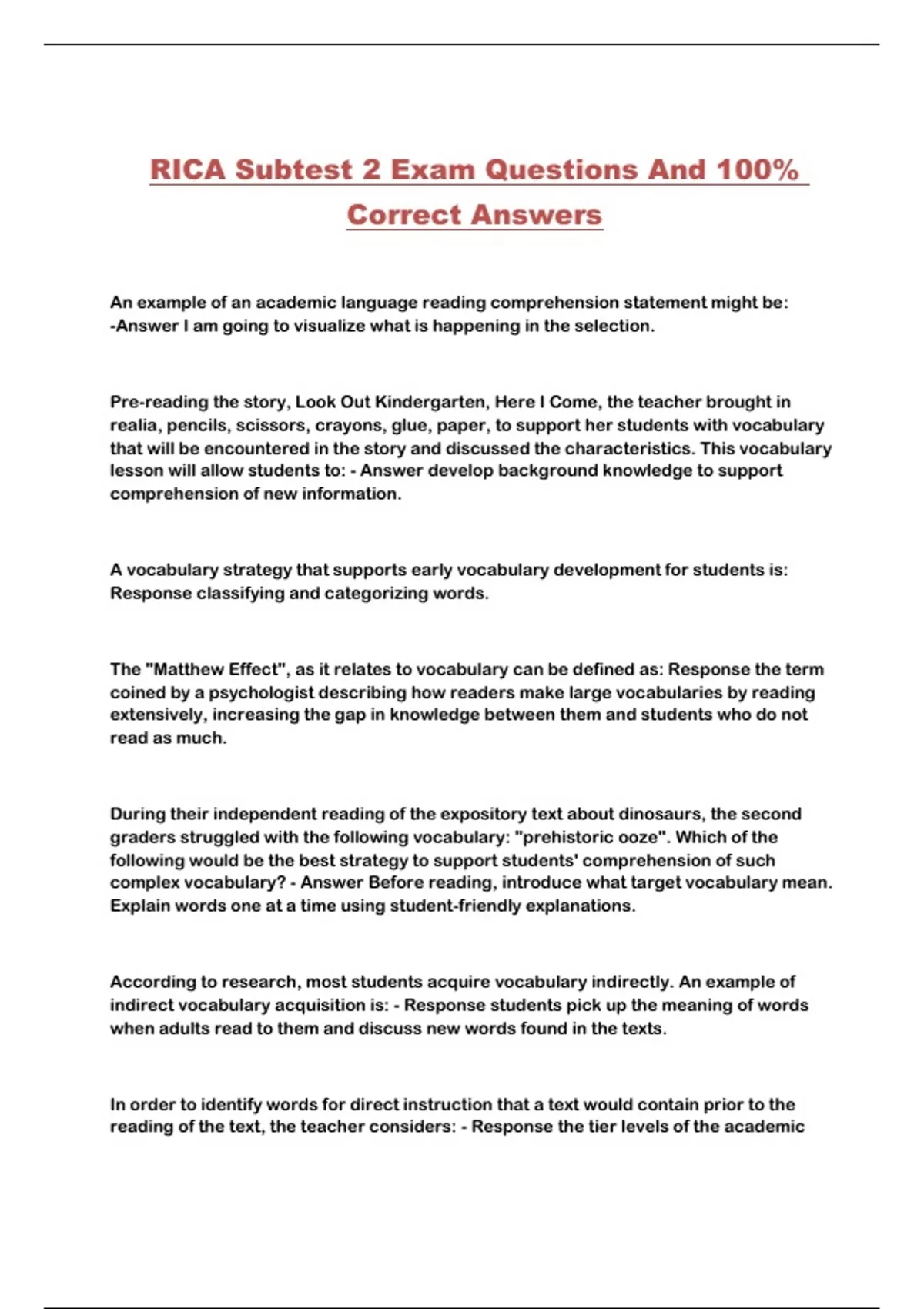 RICA Subtest 2 Exam Questions And 100%