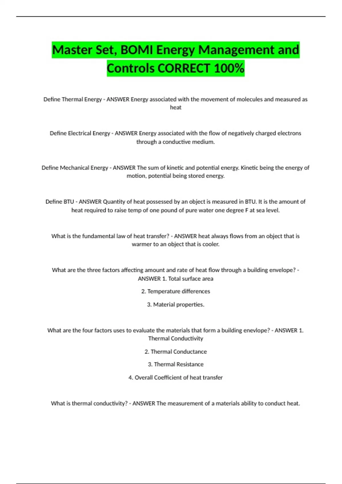 What is thermal conductivity? - ANSWER The measurement of a materials ability to conduct heat.