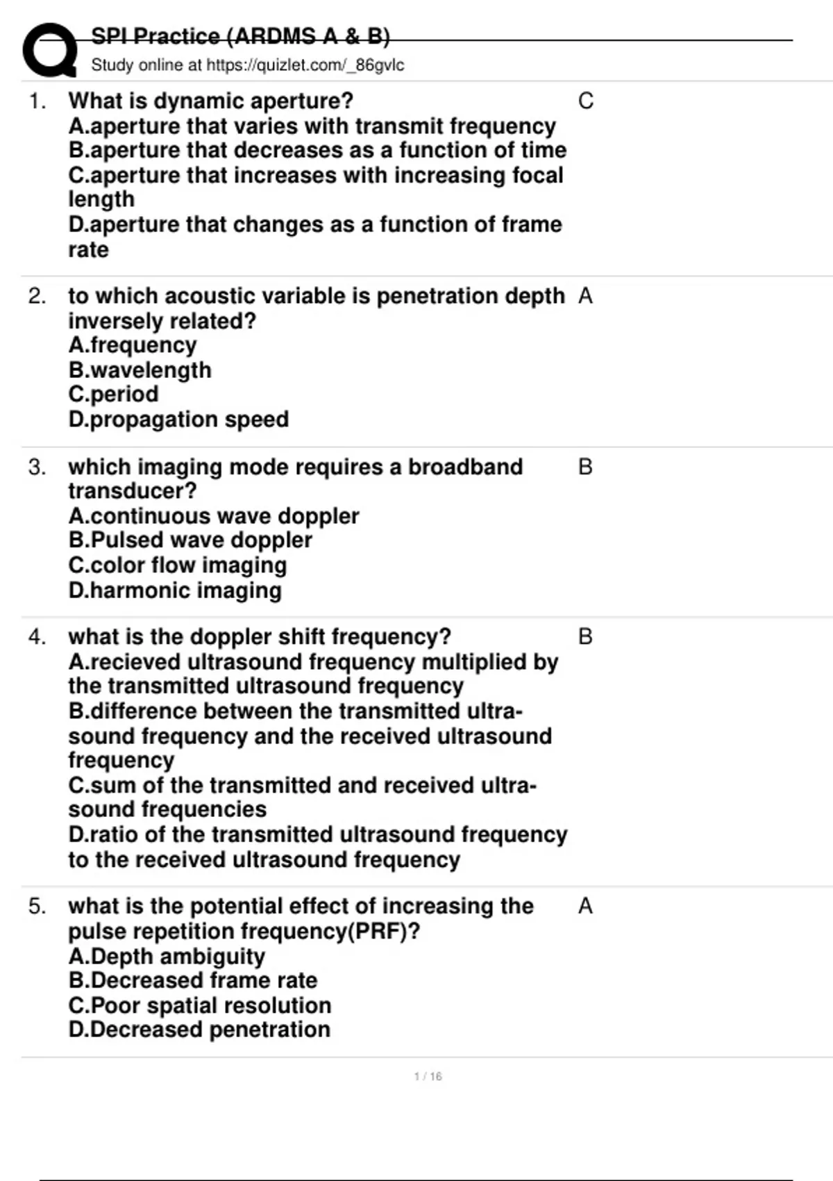 , SPI Practice (ARDMS A & B)