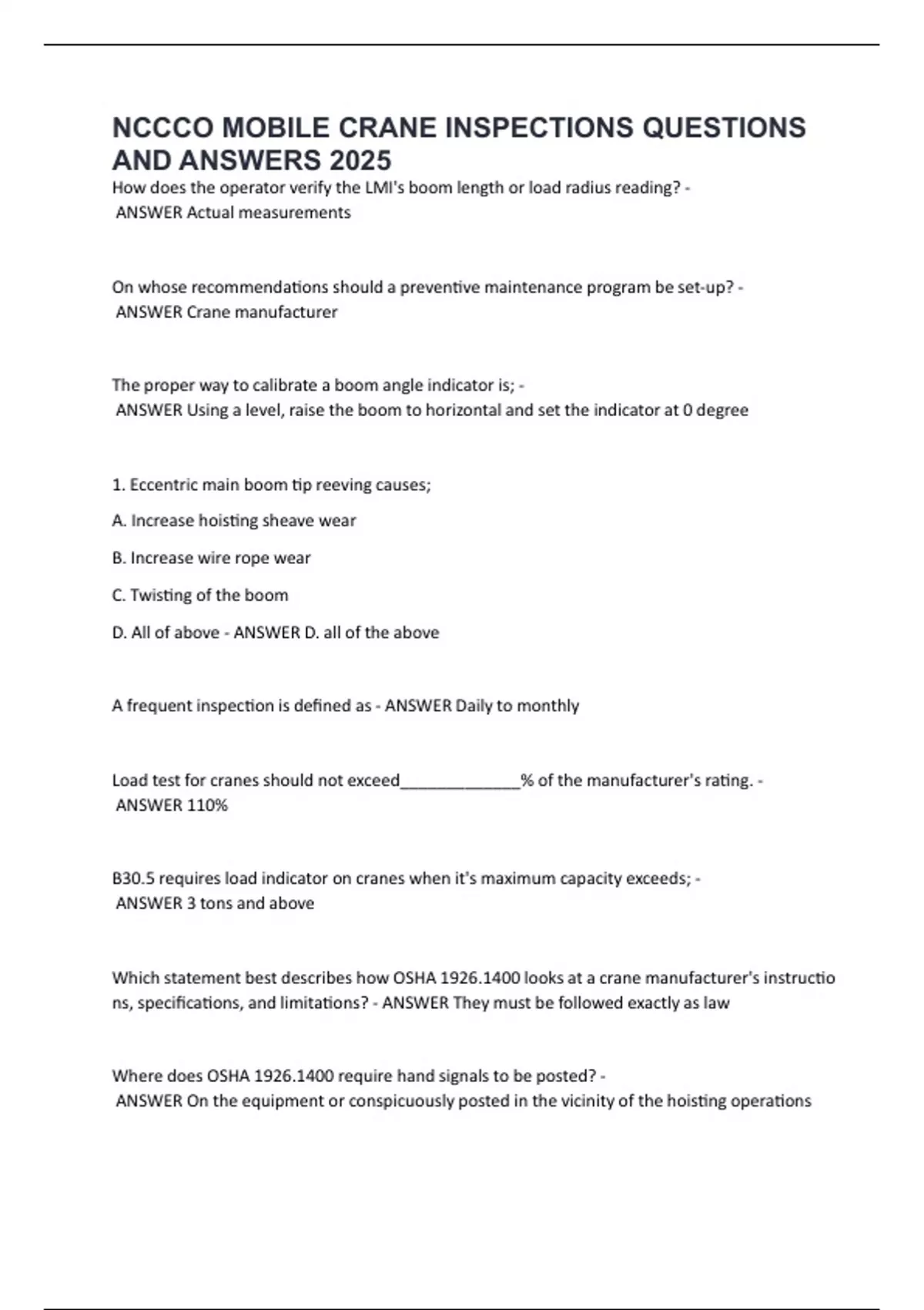 Load,test,for,cranes,should,not,exceed_____________%,of,the,manufacturer's,rating.,-
