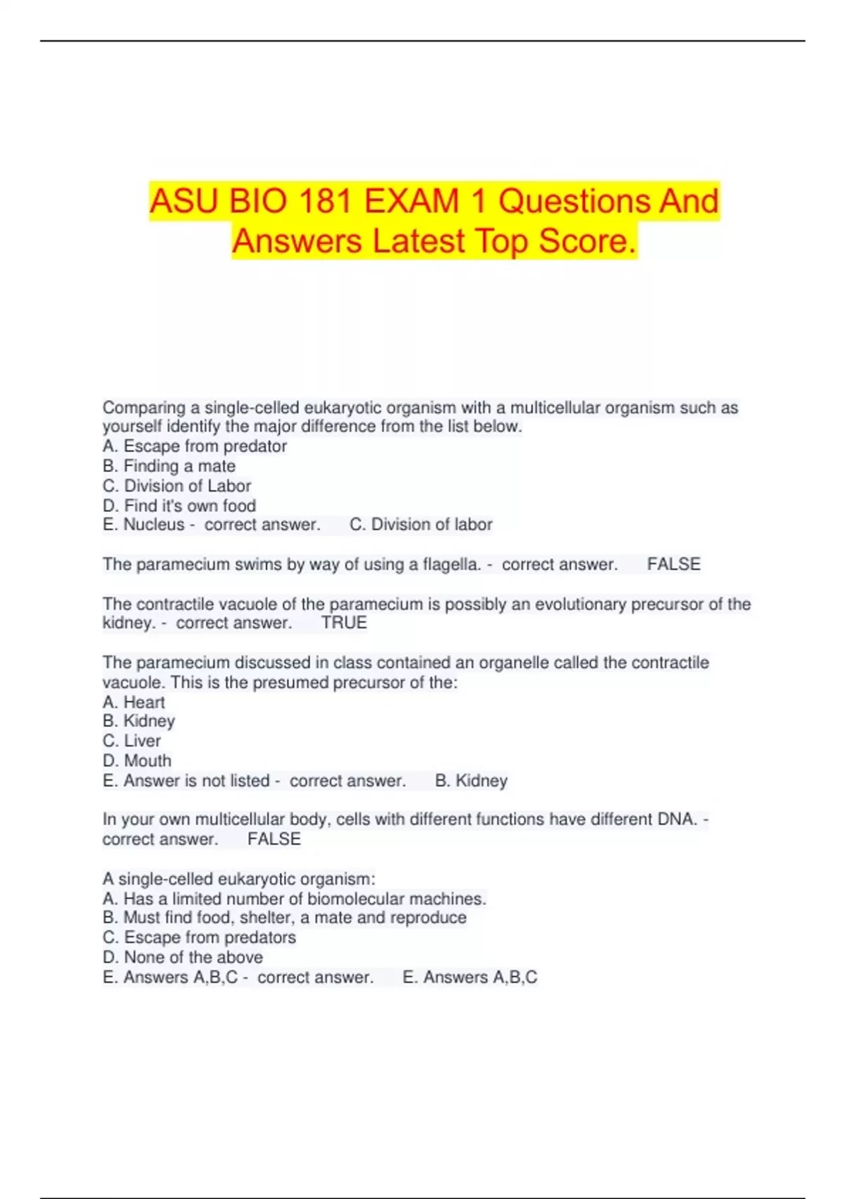 Group of answer choices - correct answer. FALSE
