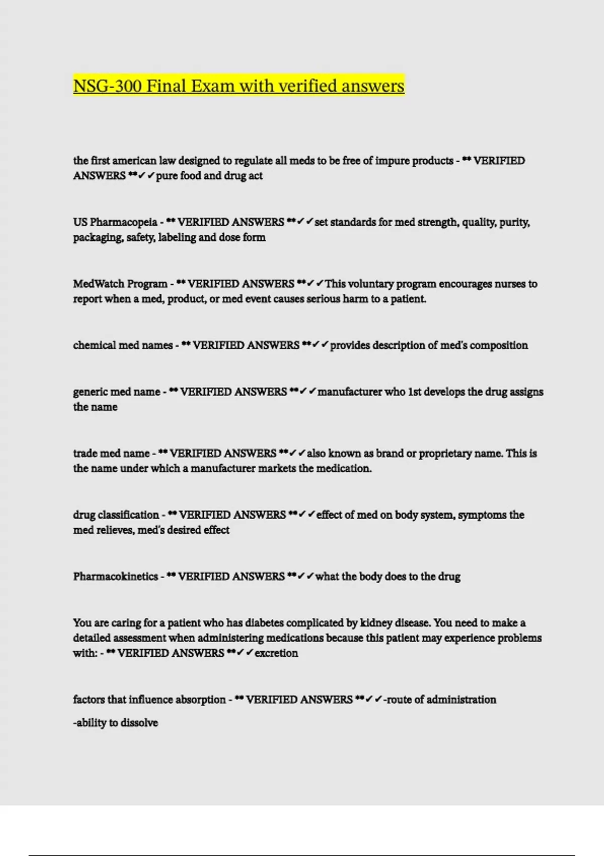 US Pharmacopeia - ** VERIFIED ANSWERS **✔✔set standards for med strength, quality, purity,