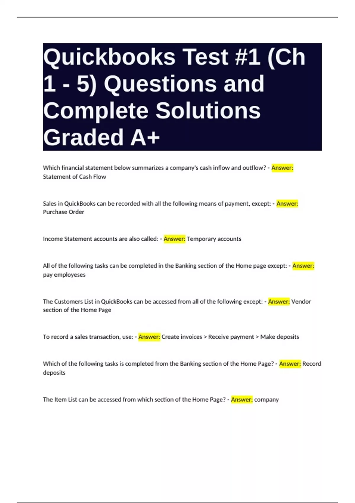 The Home page in QuickBooks consists of all the following sections except: - Answer: lists
