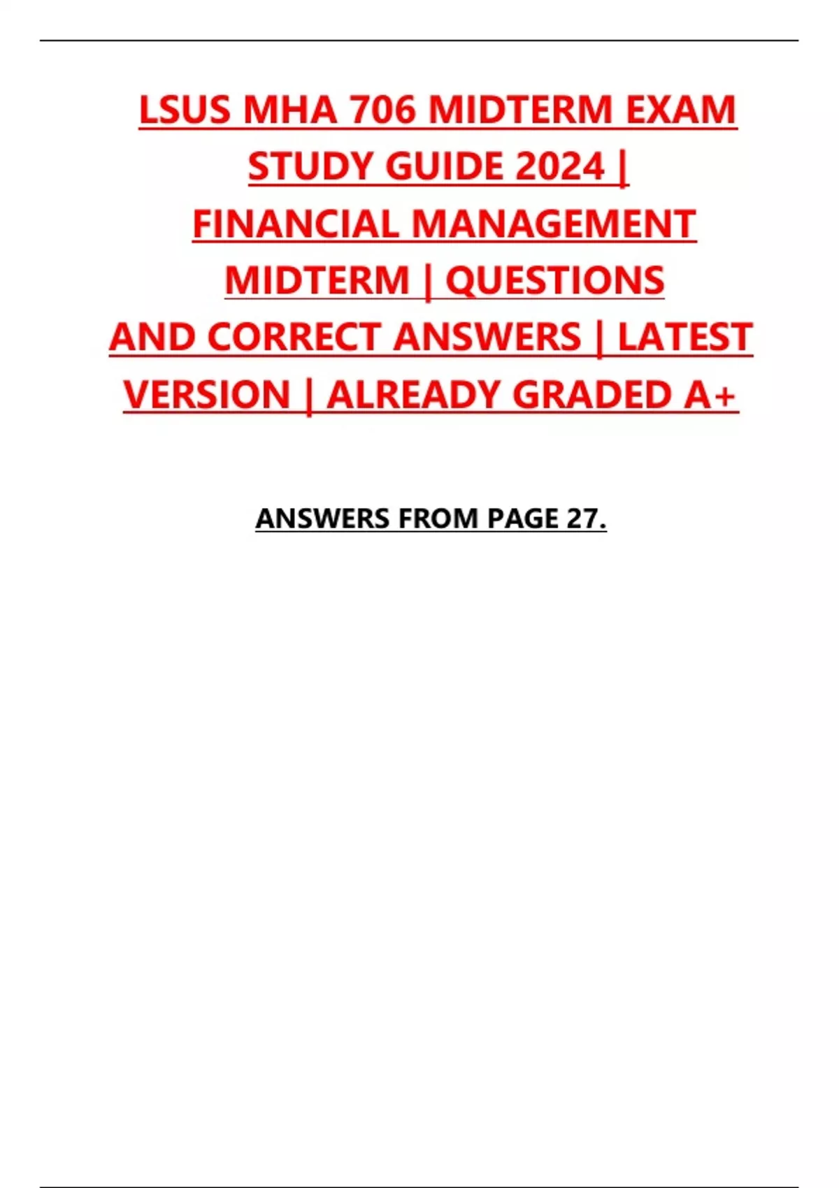 ,LSUS MHA 706 MIDTERM EXAM STUDY