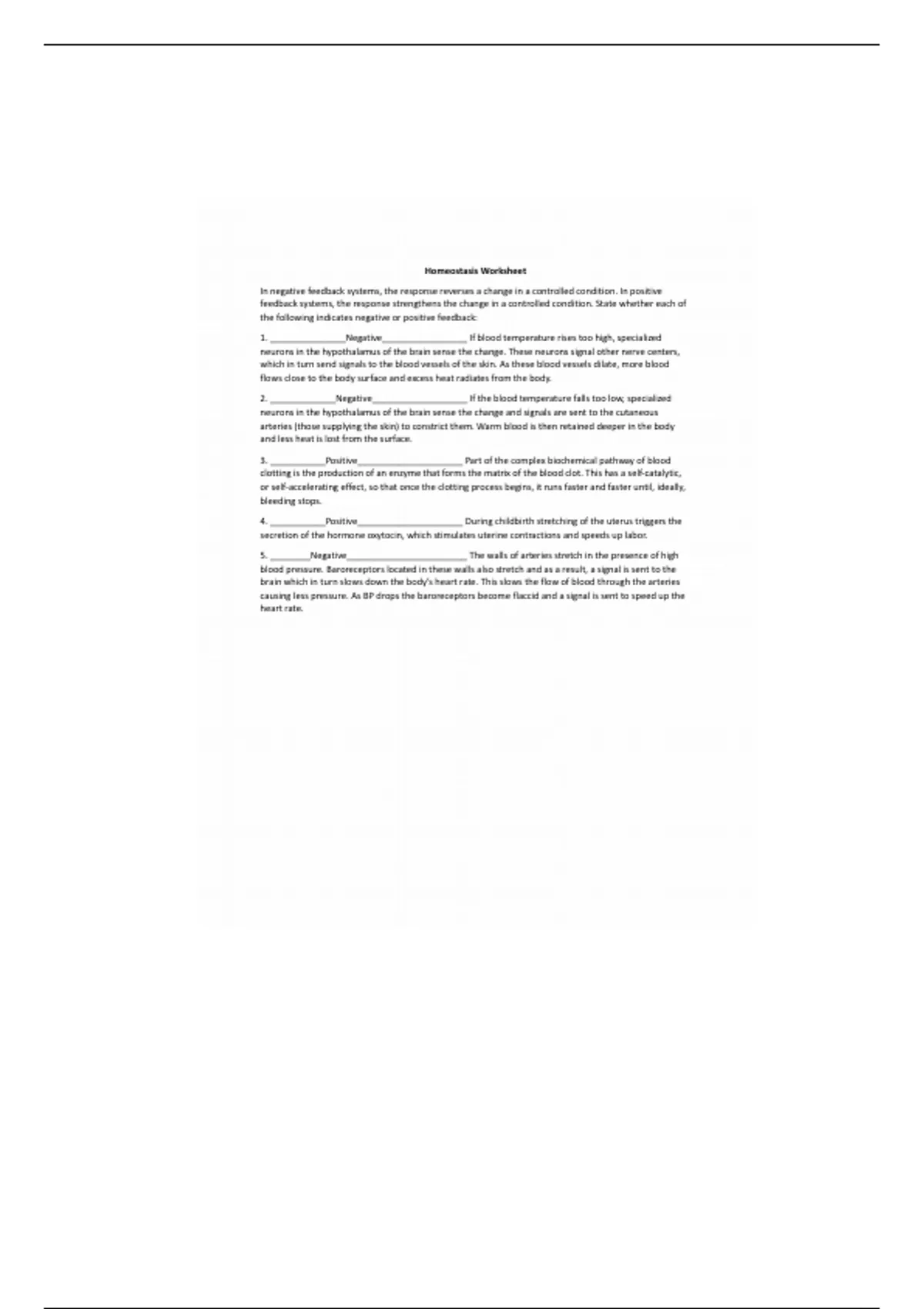 Homeostasis Worksheet