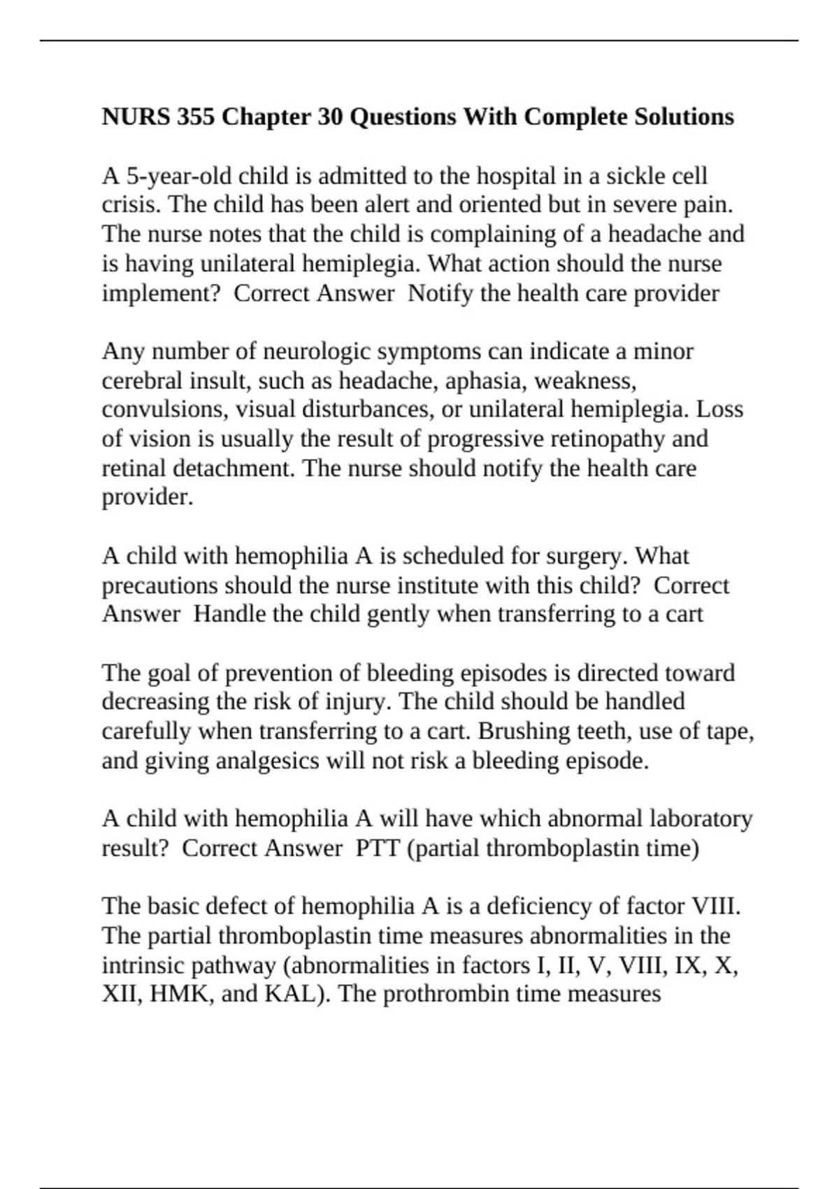 NURS 355 Chapter 30 Questions With Complete Solutions