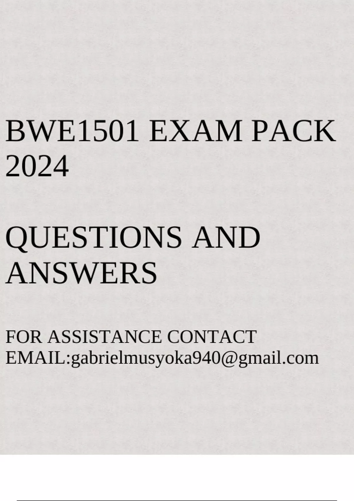 BWE1501 EXAM PACK