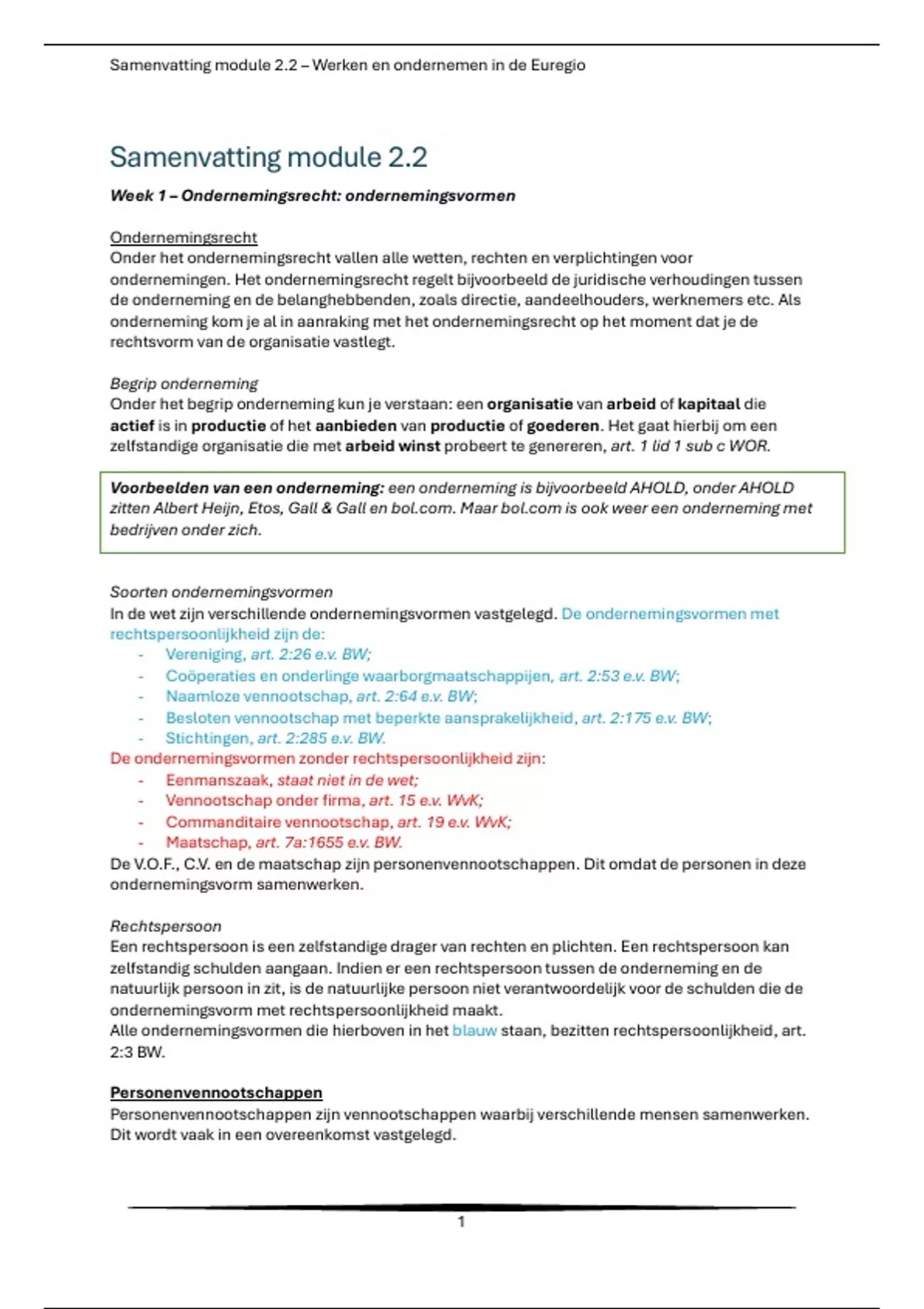 , Samenvatting module 2.2 – Werken en ondernemen in de Euregio