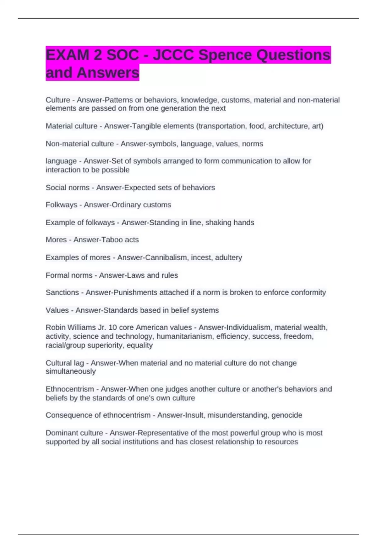 Culture - Answer-Patterns or behaviors, knowledge, customs, material and non-material