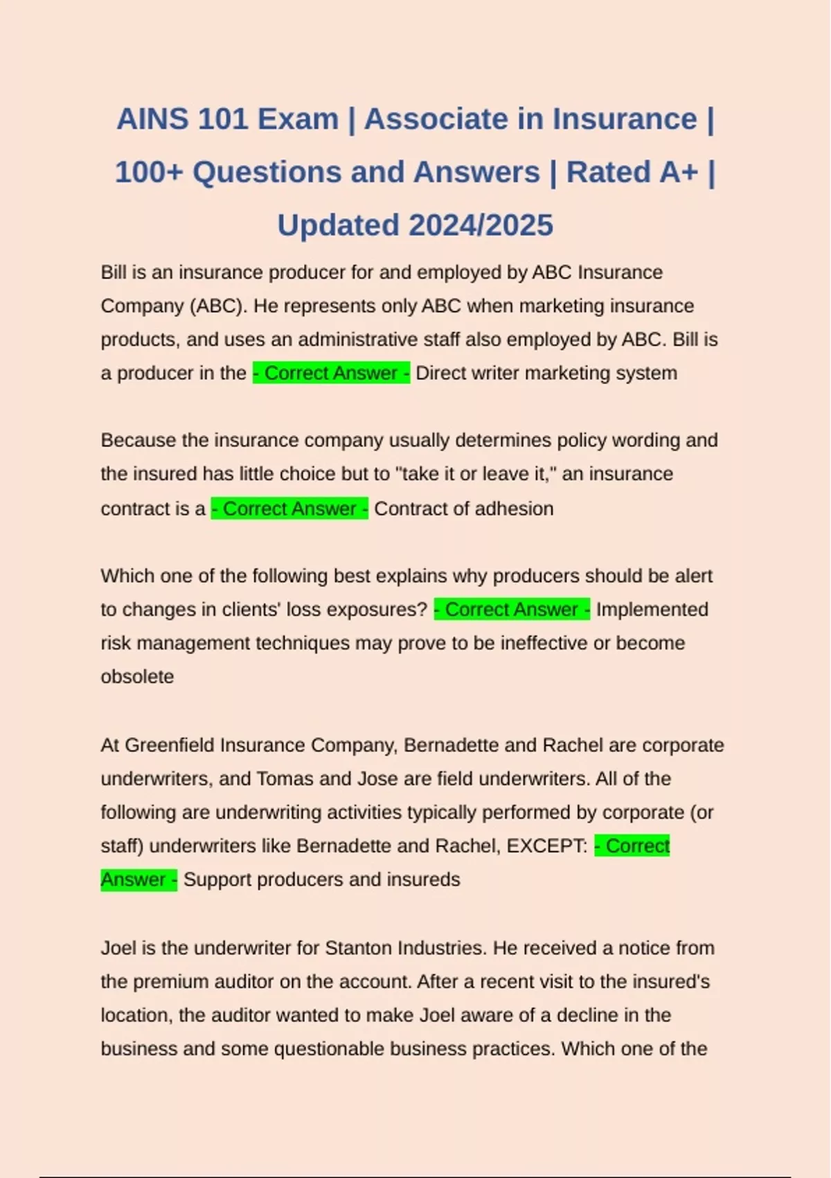 AINS 101 Exam | Associate in Insurance |