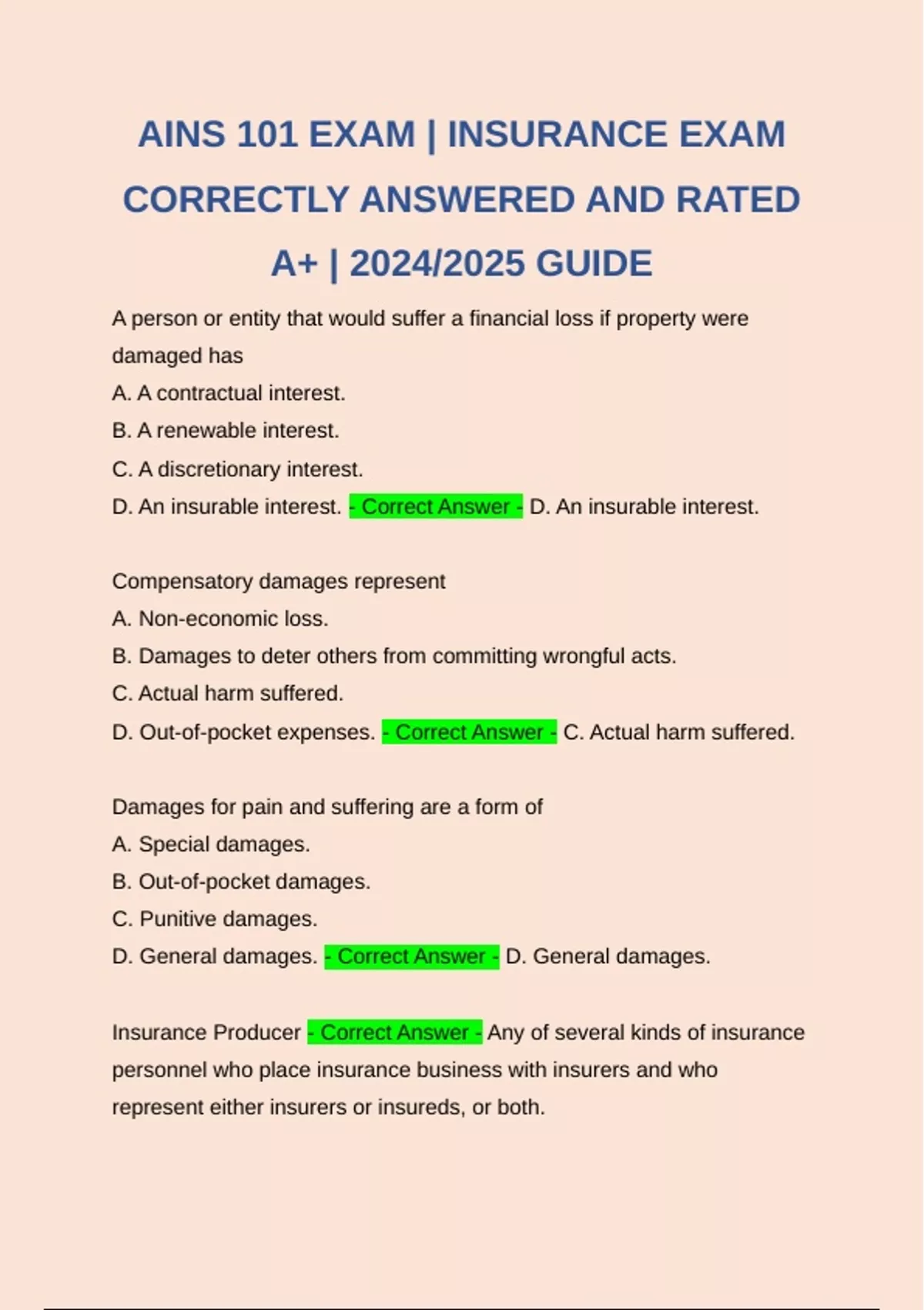 Insurance Producer - Correct Answer - Any of several kinds of insurance