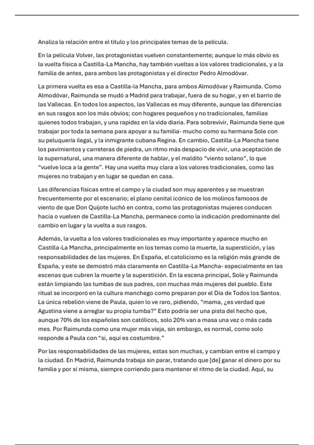 La primera vuelta es esa a Castilla-la Mancha, para ambos Almodóvar y Raimunda. Como