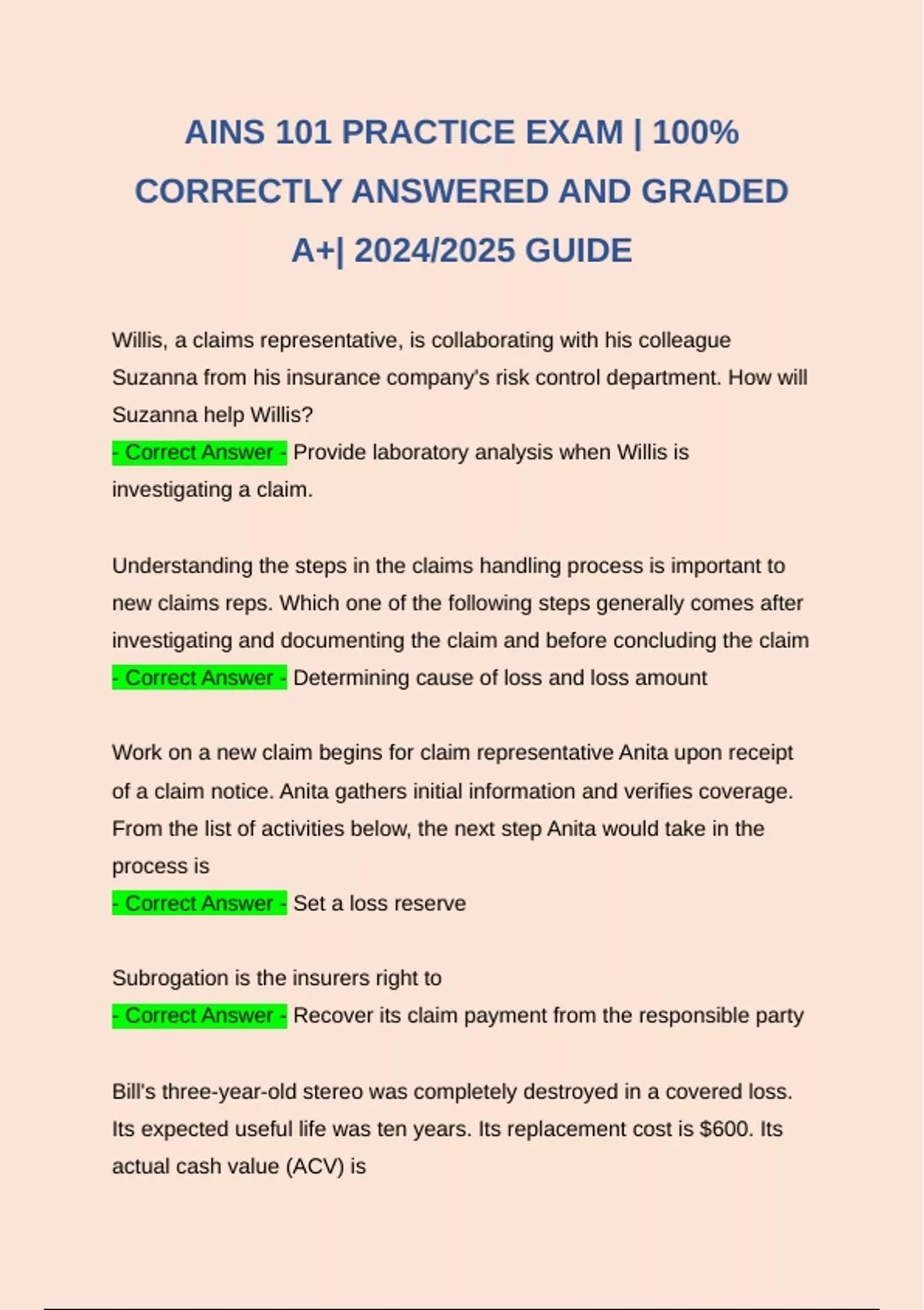AINS 101 PRACTICE EXAM | 100%