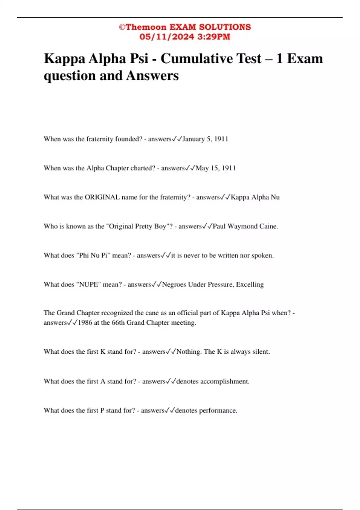 Kappa Alpha Psi - Cumulative Test – 1 Exam