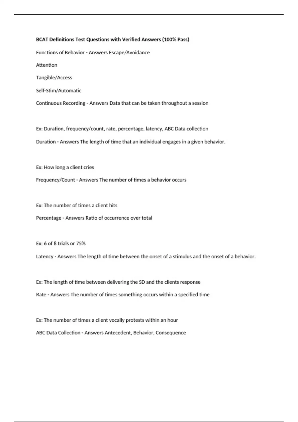 Duration - Answers The length of time that an individual engages in a given behavior.