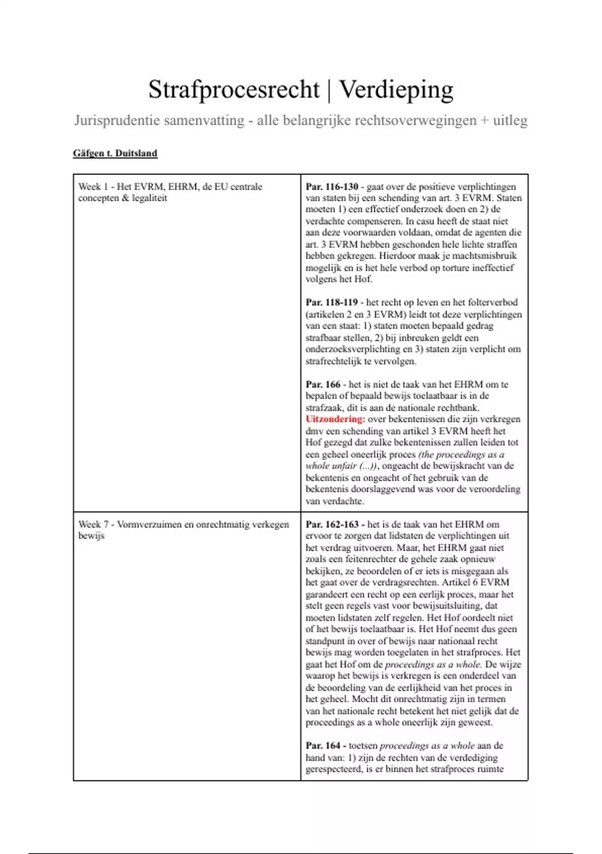 Jurisprudentie samenvatting - alle belangrijke rechtsoverwegingen + uitleg