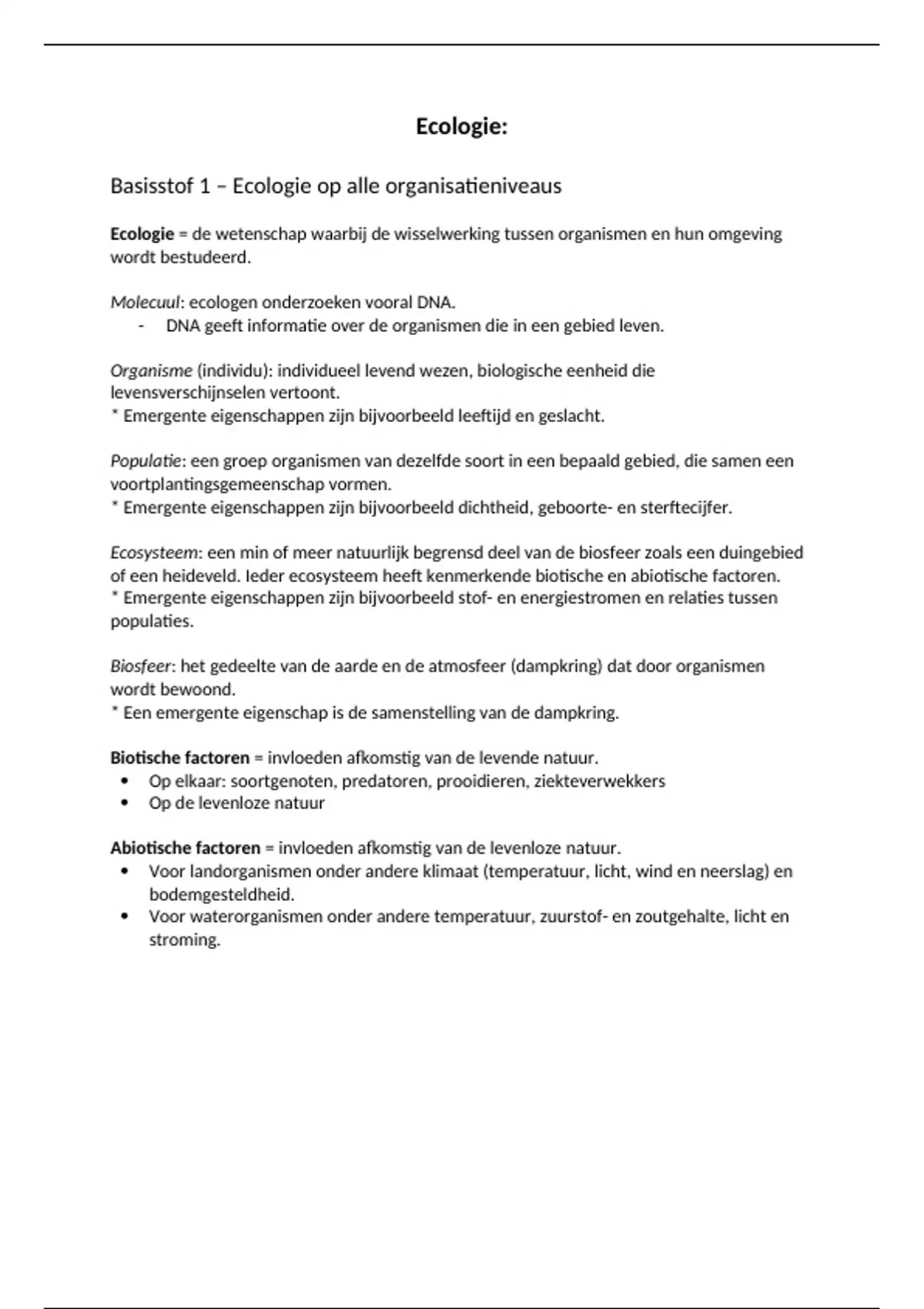 Basisstof 1 – Ecologie op alle organisatieniveaus