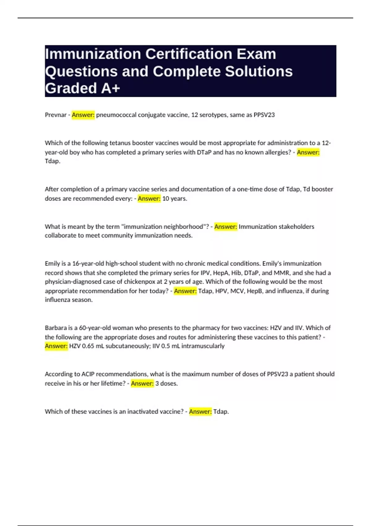 Immunization Certification Exam Questions and Complete Solutions Graded A+