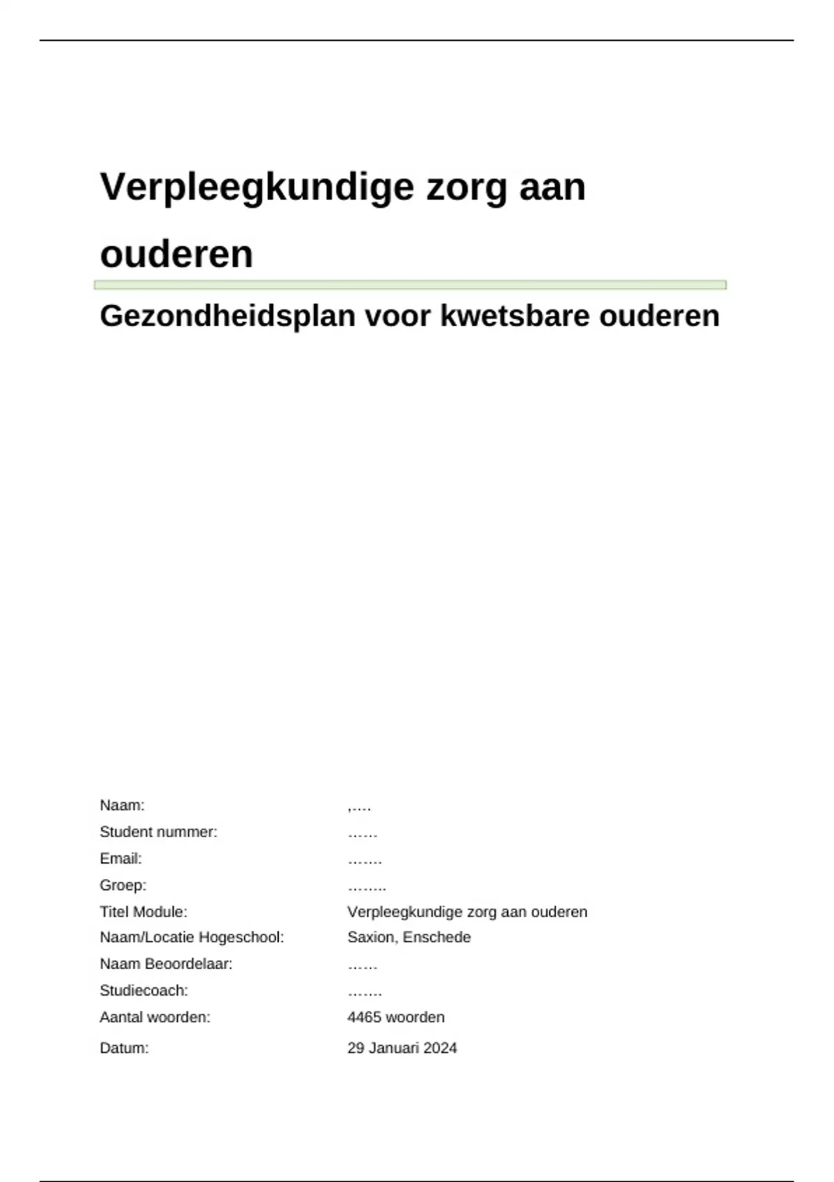 Titel Module: Verpleegkundige zorg aan ouderen