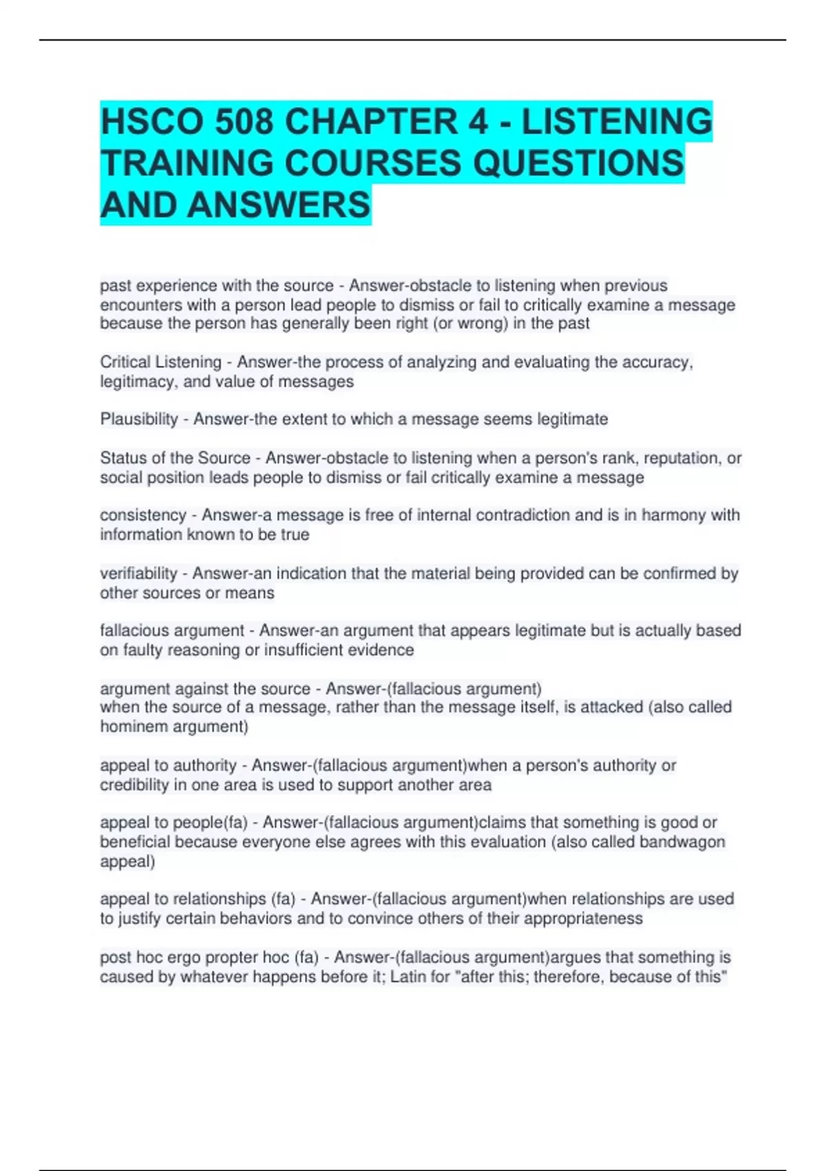 Critical Listening - Answer-the process of analyzing and evaluating the accuracy,