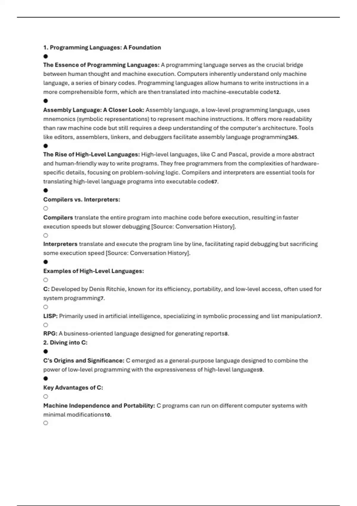 specific details, focusing on problem-solving logic. Compilers and interpreters are essential tools for