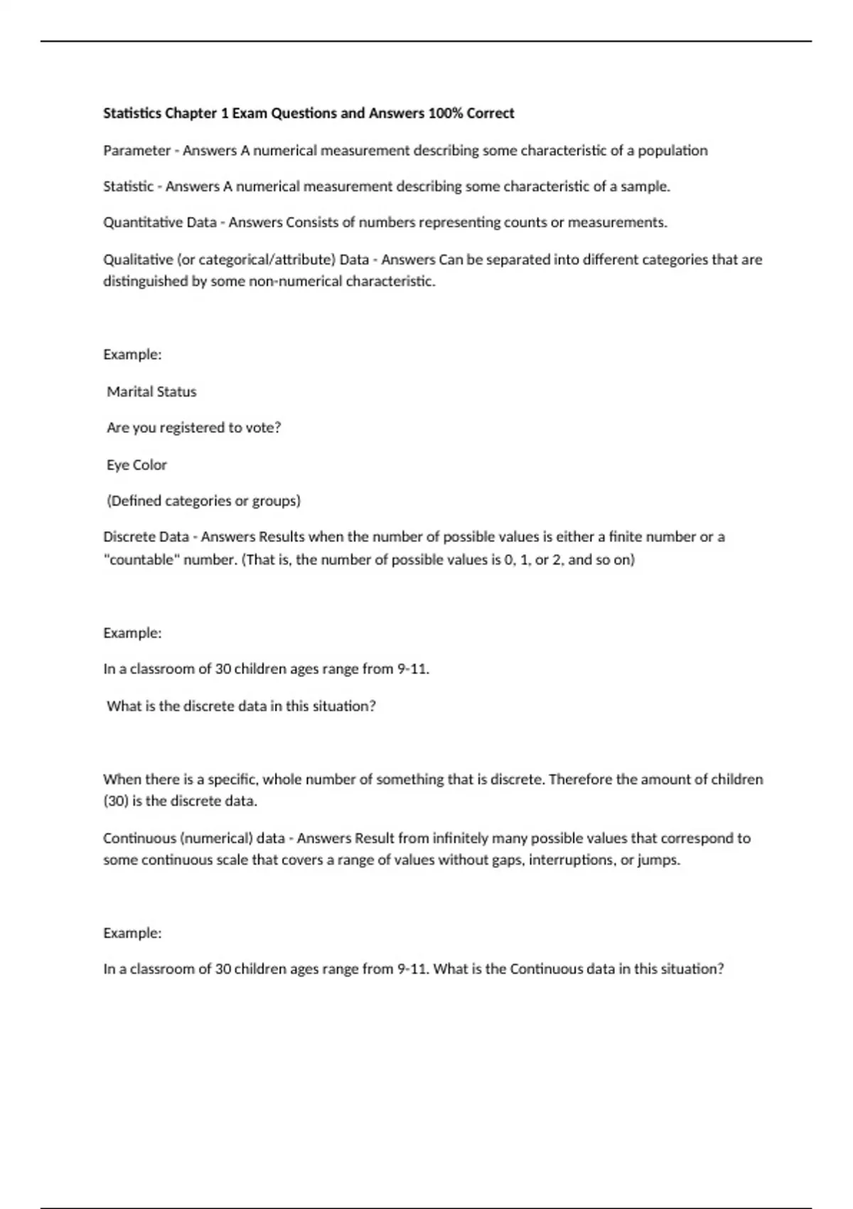 Continuous (numerical) data - Answers Result from infinitely many possible values that correspond to