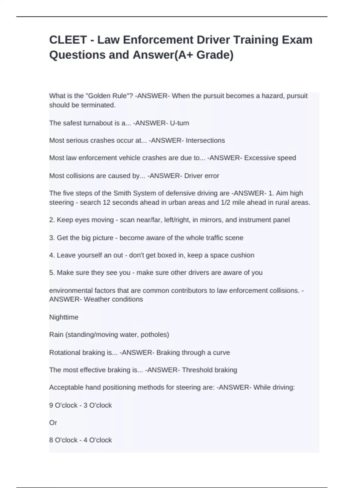 Acceptable hand positioning methods for steering are: -ANSWER- While driving: